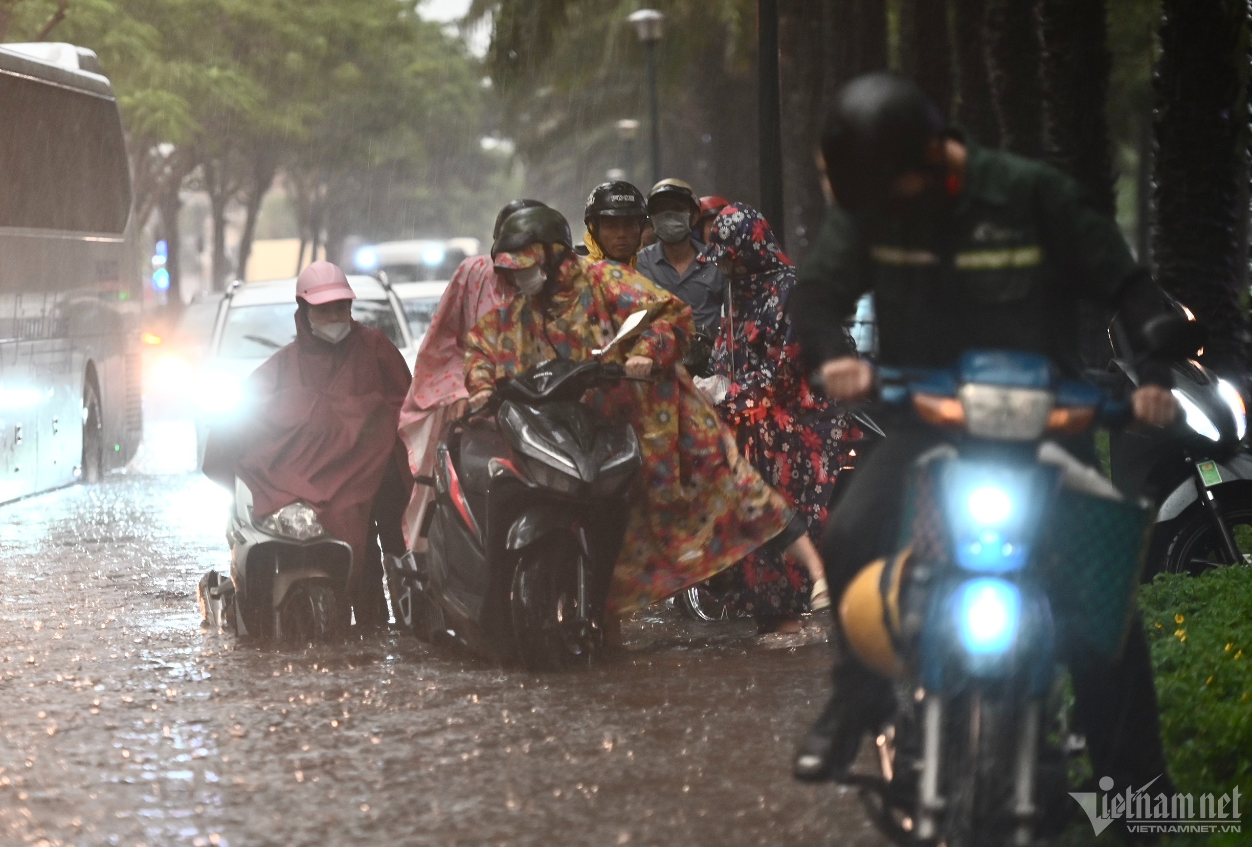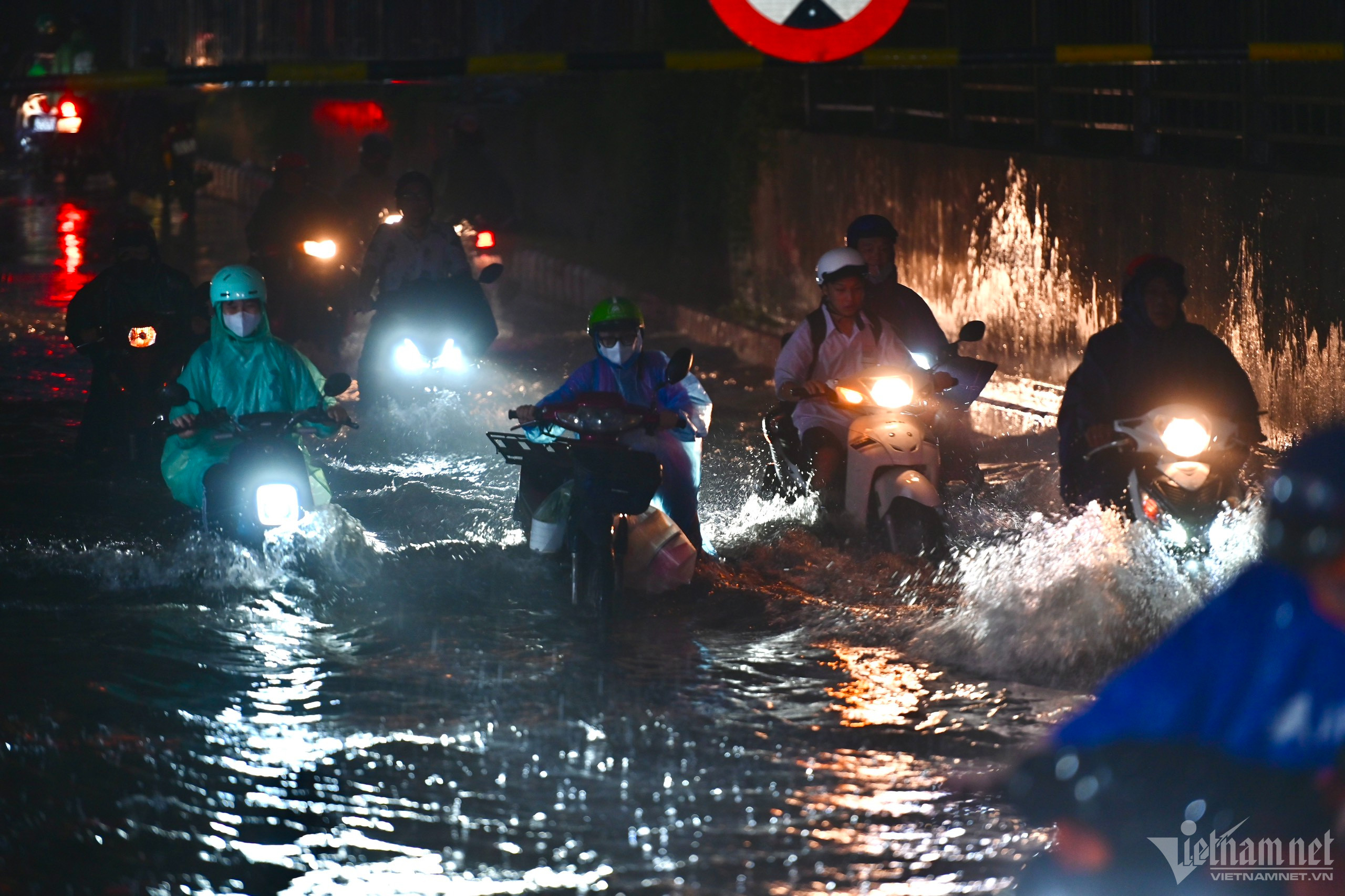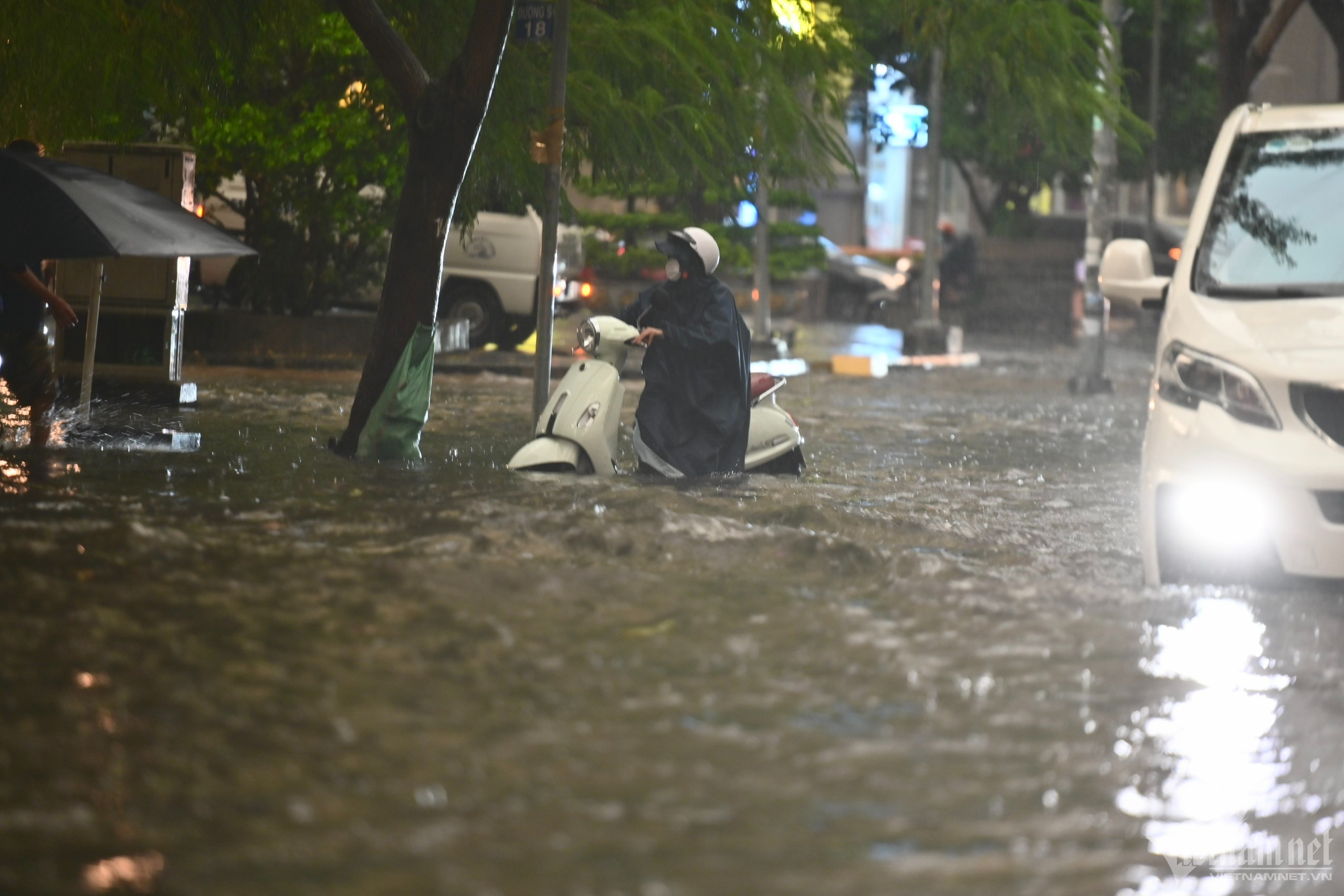 Đến 19h30, nhiều tuyến đường nước vẫn ngập sâu, nhiều người chưa thể về đến nhà sau một ngày làm việc mệt mỏi.