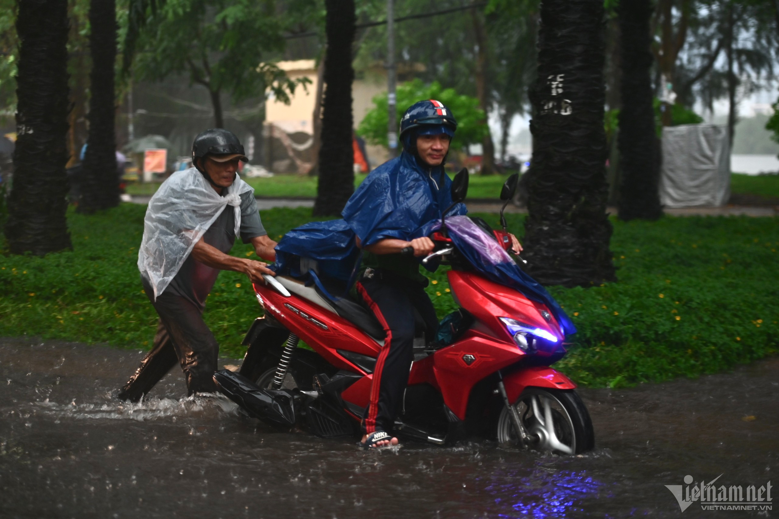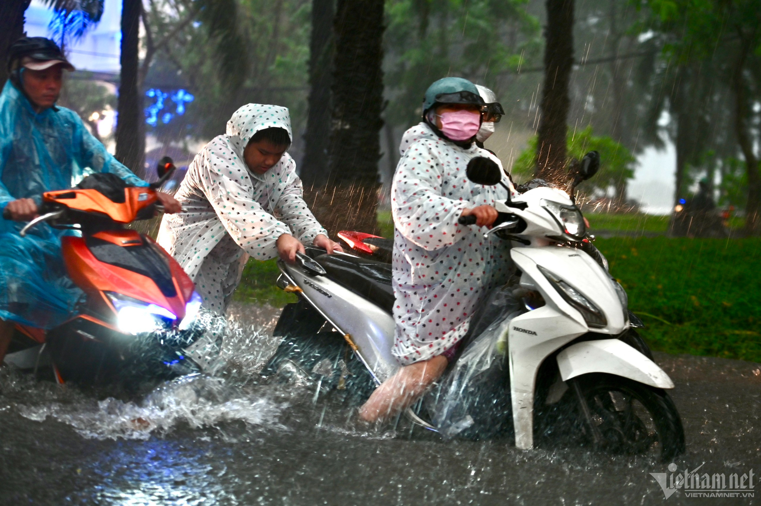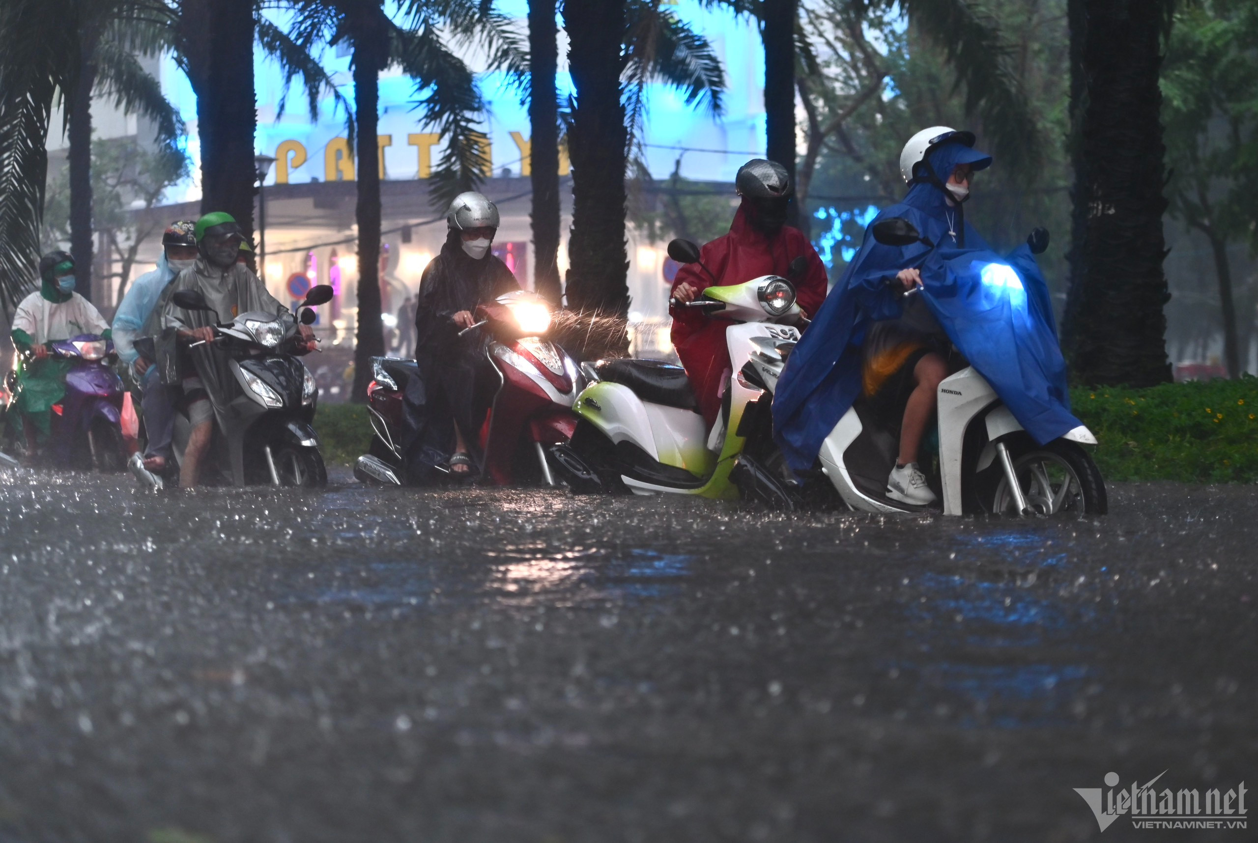 Đến 19h30, nhiều tuyến đường nước vẫn ngập sâu, nhiều người chưa thể về đến nhà sau một ngày làm việc mệt mỏi.