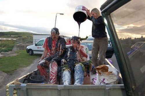 Bôi bẩn cô dâu: Đây là truyền thống lâu đời ở Scotland. Trước khi đón cô dâu về nhà chồng, người nhà chú rể sẽ ném đủ các thứ như bột mì, sữa hỏng, đồ ăn thừa hay những thứ bốc mùi vào người cô dâu. Chú rể và cô dâu còn bị đổ nước mật đường, bột mì hay bôi nhọ nồi để xua đổi những điều xấu. |