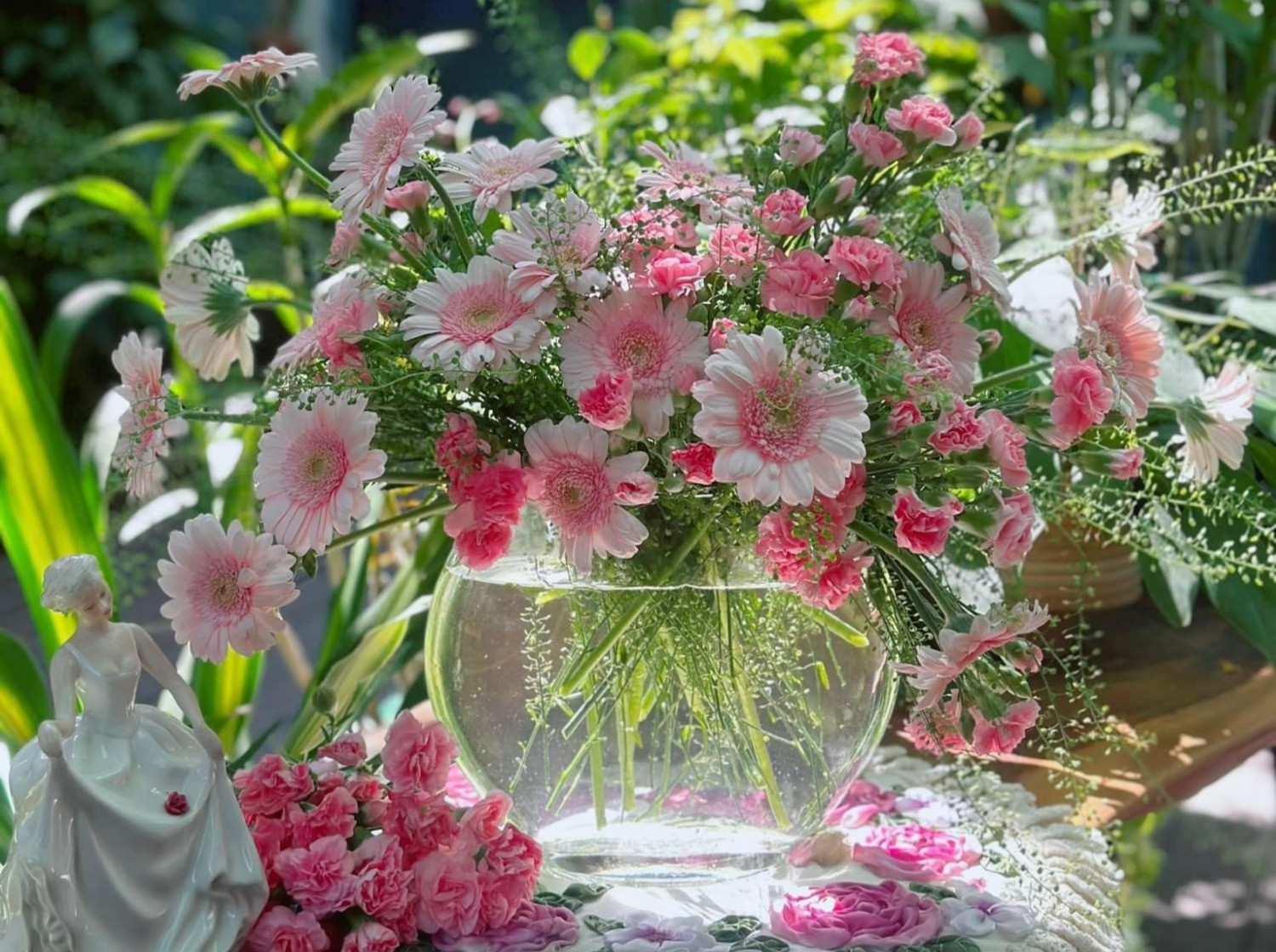 "Hoa đồng tiền không có mùi, màu sắc lại tươi vui rực rỡ nên là lựa chọn tối ưu cho những ai bị dị ứng phấn hoa. Để hoa tươi lâu, ngoài việc chọn cách cắm hoa trên xốp thì sau 3-5 ngày nên hạ độ cao cắt chéo phần gốc cắm dưới xốp để tạo hình bình hoa mới", chị Nhài chia sẻ.