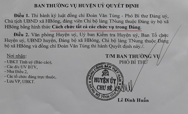 Thông tin từ UBND huyện Chư Sê cũng cho biết, đã ban hành quyết định cách chức Chủ tịch UBND xã H'Bông đối với ông Tùng.