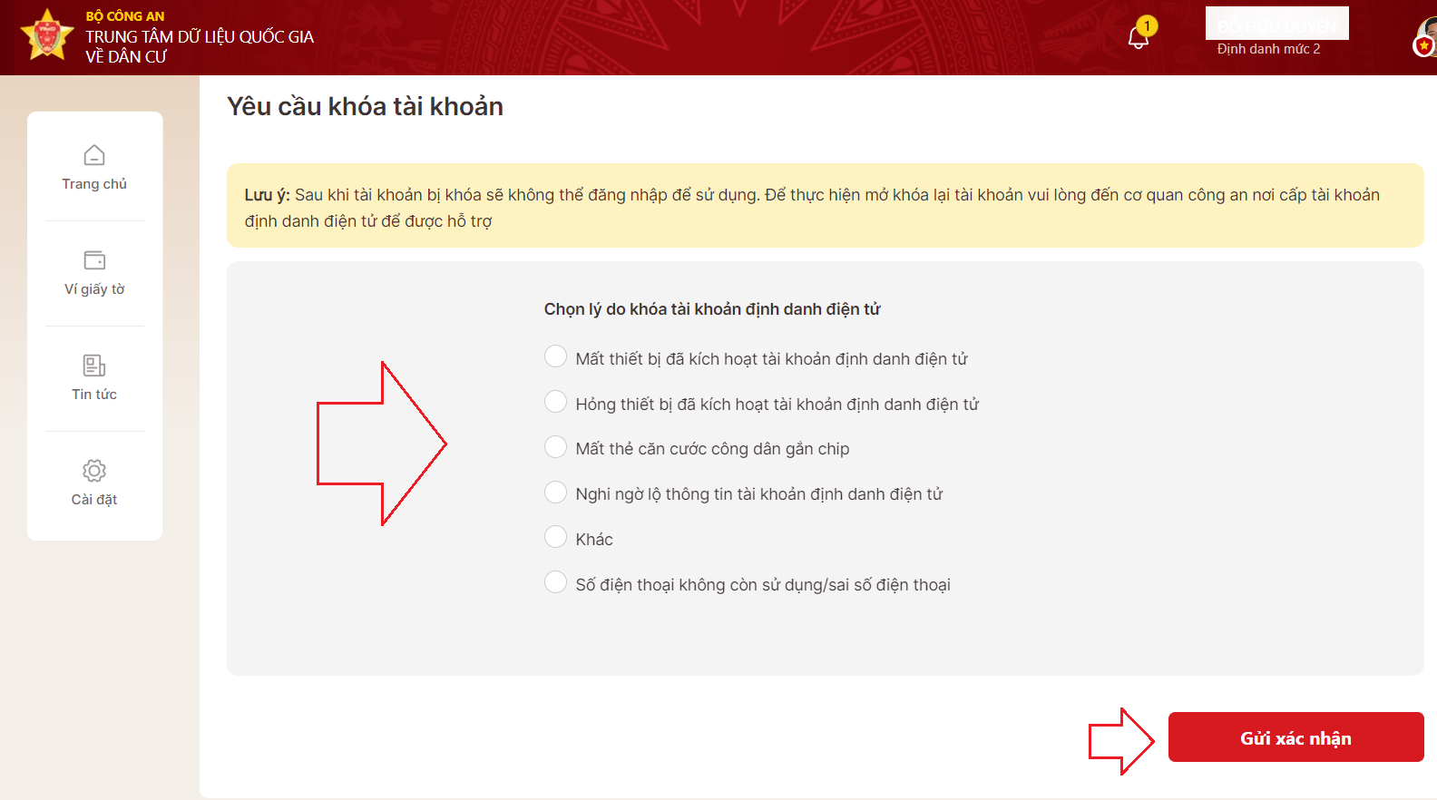 Lưu ý, sau khi VNeID bị khóa sẽ không thể đăng nhập để sử dụng. Để mở khóa tài khoản định danh điện tử, bạn cần đến cơ quan công an nơi cấp tài khoản định danh điện tử để được hỗ trợ.