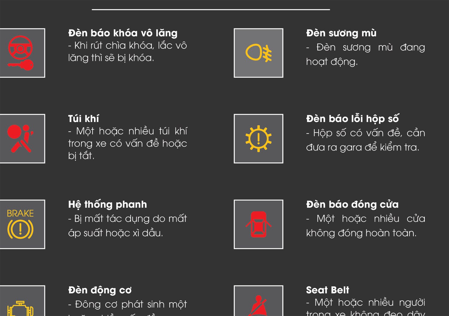 Ý nghĩa các đèn cảnh báo trên bảng điều khiển