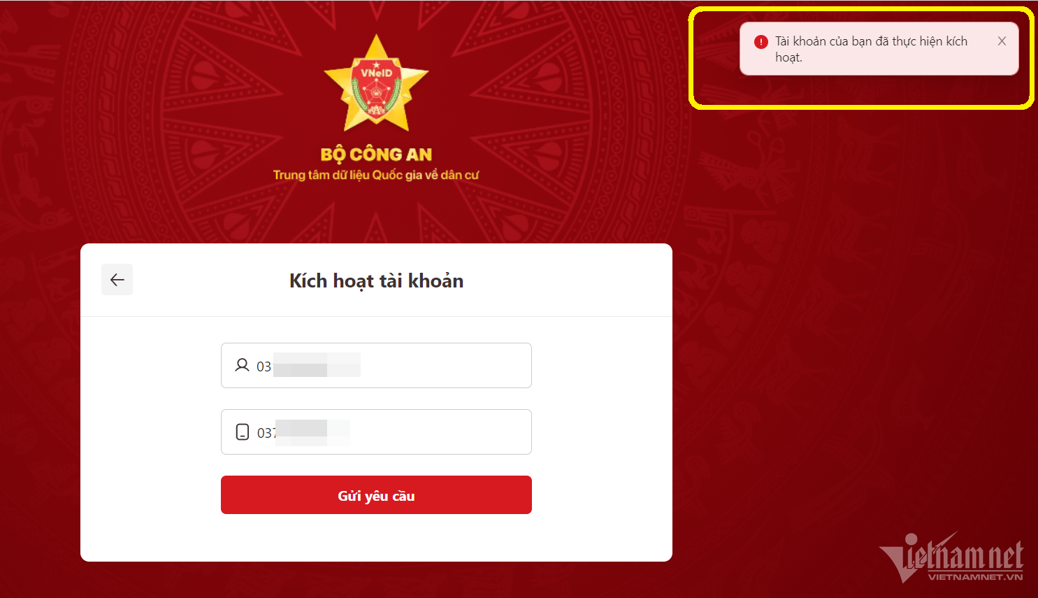 Nếu tài khoản đã được kích hoạt trước đó thì sẽ có thông báo với nội dung "Tài khoản của bạn đã được kích hoạt".