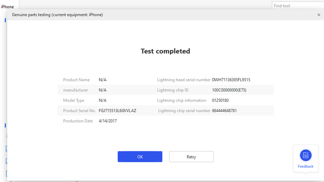 Nếu cáp Lightning của bạn là hàng chính hãng, 3uTools sẽ hiện ra thông báo như hình dưới.