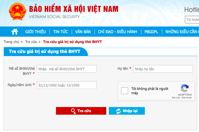 Bước 4: Nhập thông tin để tra cứu mã thẻ BHYT