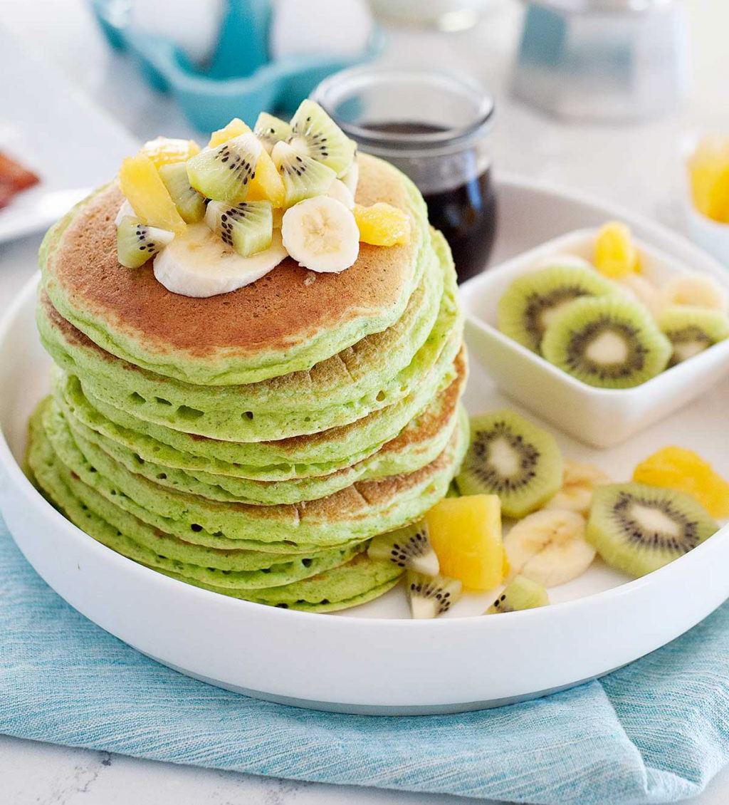 4. Bánh kếp được xếp chồng lên nhau, có thể rưới xi rô cây phong hoặc mật ong để thưởng thức. Ngoài ra, bạn có thể thêm hoa quả cắt nhỏ để ăn cùng bánh kếp.
