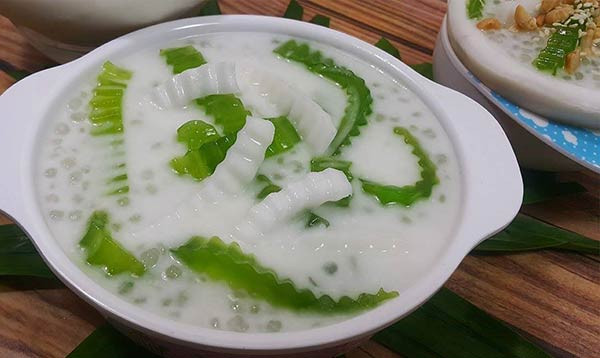 Ngâm hạt bột báng vào tô nước lạnh khoảng 15 phút, đổ ra rổ và để ráo nước. Tiếp đó, cho bột báng vào nồi nước, luộc cho đến khi bột báng trong thì vớt ra, rửa với nước lạnh và để ráo.