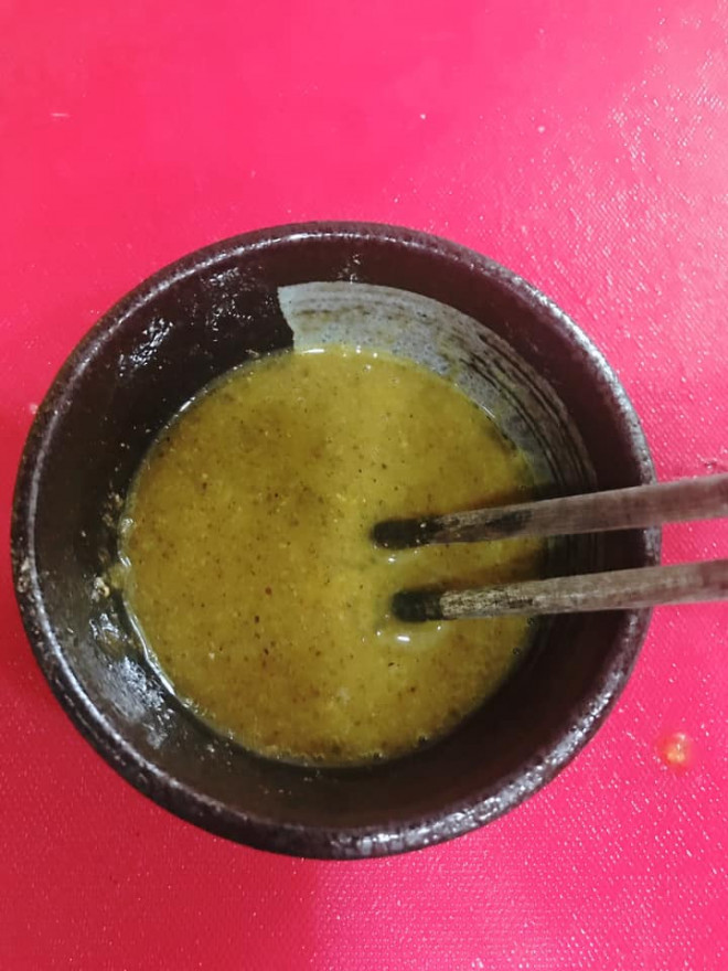 Lọc 3 lòng đỏ trứng gà với 1 muỗng canh hạt nêm, 0,5 muỗng tiêu xay và và 0,5 muỗng dầu ăn. Tất cả đảo đều thành 1 hỗn hợp sền sệt