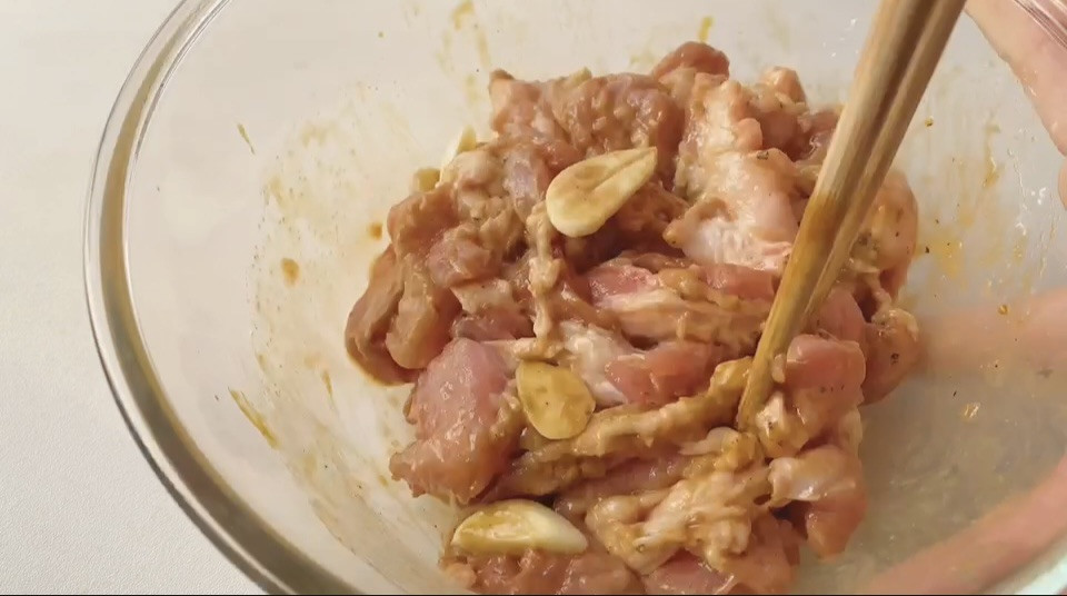 2. Gia vị ướp thịt: 30ml nước tương, 15ml dầu hào, 5 tép tỏi, 15g dầu ăn, 4g bột tiêu, 8g bột bắp.