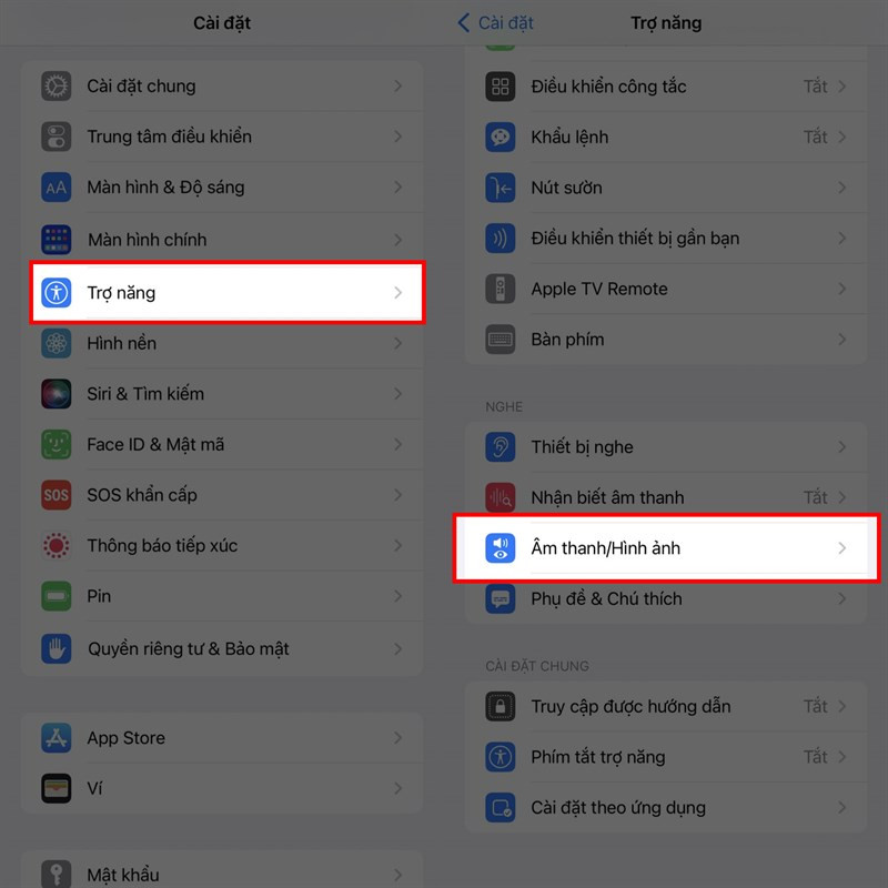 Trước hết trên những chiếc iPhone 14, người dùng truy cập vào mục "Cài đặt" => "Trợ năng" => "Âm thanh/Hình ảnh".