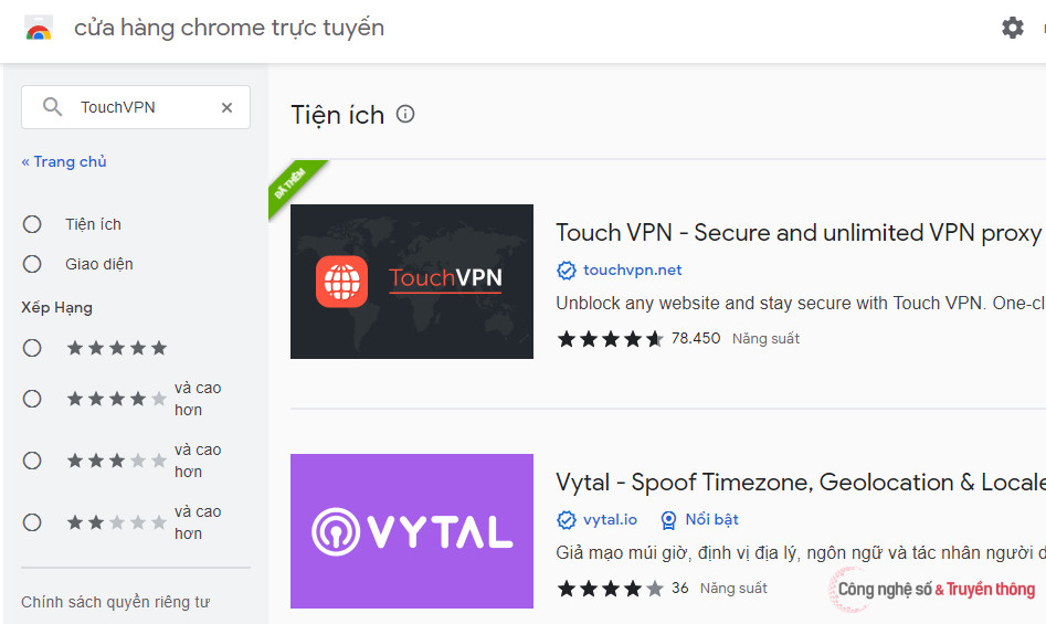 Tại ô Tìm kiếm trong cửa hàng, gõ TouchVPN, sau đó chọn tải về và cài đặt extension này.