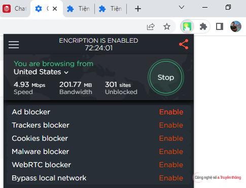 Bước 1: OpenAI chưa hỗ trợ việc sử dụng OpenAI tại Việt Nam. Do vậy, ở bước đầu tiên, người dùng cần cài extension VPN trên trình duyệt hoặc ứng dụng VPN trên smartphone.