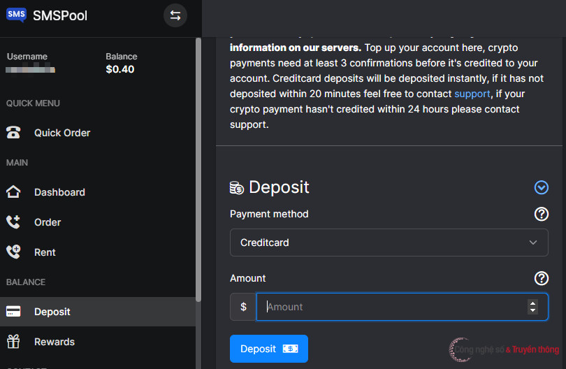 Chi phí xác minh sẽ dao động trong khoảng vài chục cent (USD), tùy vào số điện thoại của các nước. Với Mỹ, chi phí này sẽ dao động trong khoảng 0,6-0,8 USD. Để chắc chắn, người dùng có thể nạp 1 USD vào tài khoản smspool. Khi nạp thành công, số dư trên tài khoản smspool sẽ hiện lên ở góc trái trang web.