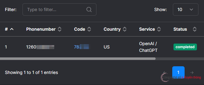 Khoảng vài giây sau, một đoạn mã OTP (6 chữ số) sẽ hiện lên trong ô Code ở trang smspool. Đây là đoạn mã OTP mà bạn cần. Hãy gõ đoạn mã đó sang trang OpenAI để xác thực.