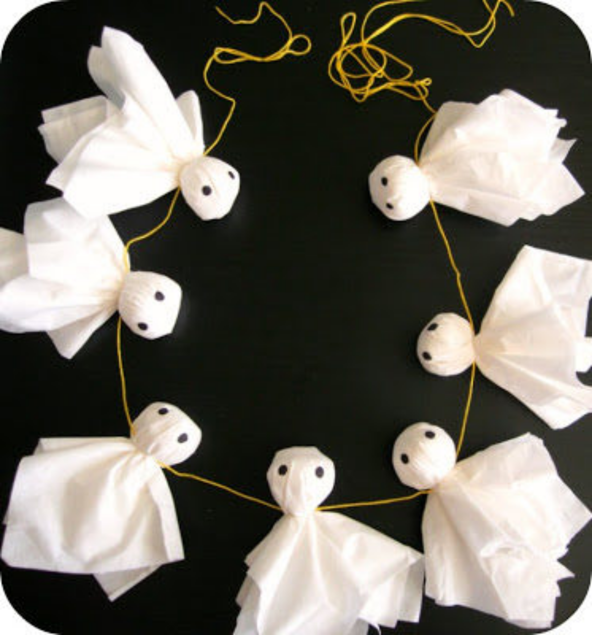Ngoài ra, bạn có thể dùng giấy vệ sinh quấn quanh phần lõi, dùng kéo cắt tỉa một chút tạo hình thành những chú ma trang trí cực đáng yêu.