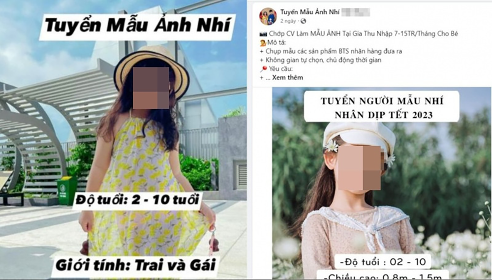 Chiêu lừa đảo khác là tuyển dụng, đào tạo người mẫu nhí chụp ảnh mẫu đại diện cho các hãng thời trang nổi tiếng, có thu nhập cao. Đối tượng lừa đảo đã đánh vào sự háo danh của cha mẹ dành cho con em.