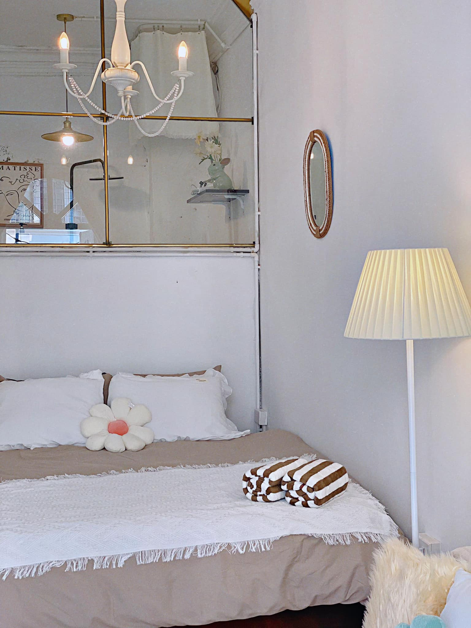Đây là căn phòng 25m2 nằm trong căn nhà cổ trên phố Bảo Khánh. Chị đã lựa chọn tone trắng với style Hàn Quốc để tạo cảm giác mềm mại, bông xốp êm ái như 1 viên kem ngọt ngào.