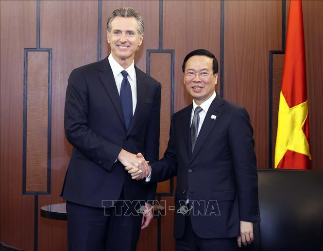 Chủ tịch nước Võ Văn Thưởng bày tỏ vui mừng gặp Thống đốc Gavin Newsom, đánh giá cao tình cảm và sự quan tâm của Thống đốc, các thế hệ lãnh đạo và nhân dân của bang California ưu tiên thúc đẩy quan hệ với Việt Nam phù hợp với nhu cầu, tiềm năng và lợi thế của hai bên; đặc biệt tự hào khi được biết Chính quyền thành phố San Francisco và Tổng lãnh sự quán Việt Nam tại San Francisco đã phối hợp tổ chức Lễ thượng cờ Việt Nam nhân kỷ niệm 78 năm Ngày Quốc khánh Việt Nam (2/9/1945 - 2/9/2023), cho thấy tình cảm và sự trân trọng của lãnh đạo và nhân dân bang California đối với Việt Nam.