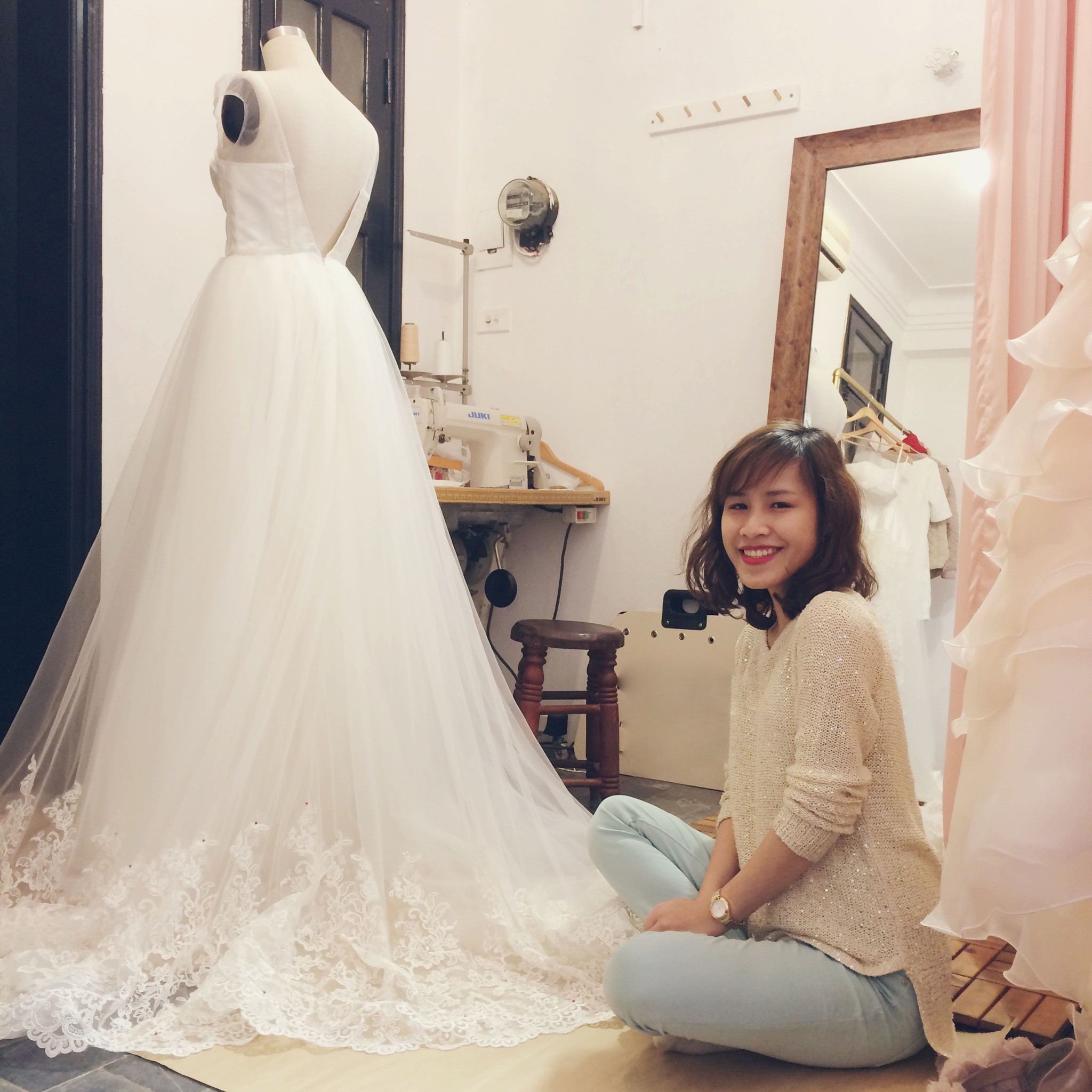 Cô tự hào khi thương hiệu váy cưới của mình vừa nắm bắt, cập nhật thường xuyên xu hướng thế giới vừa rất phù hợp với vóc dáng người Việt.