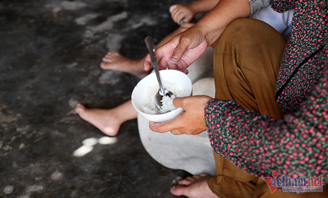 Thấy bé Hạnh kêu đói, chị Bình loay hoay mãi mới có thể lấy cơm cho con. Bữa cơm trưa nay của gia đình chỉ là chút cơm nguội trộn với đường trắng, ăn cho đỡ đói lòng.