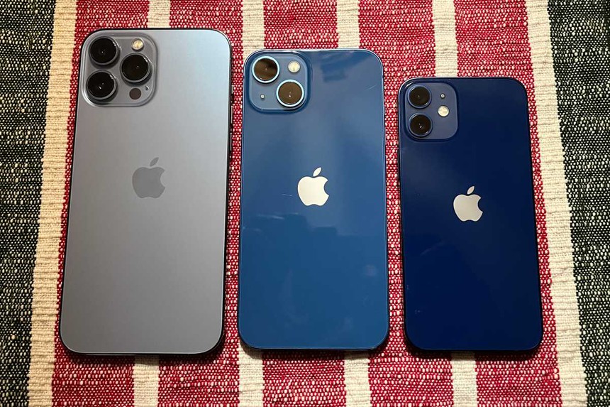 iPhone 13 Pro Max (ngoài cùng bên trái) so với iPhone 13 và iPhone 12 mini. Ảnh: Macworld. |