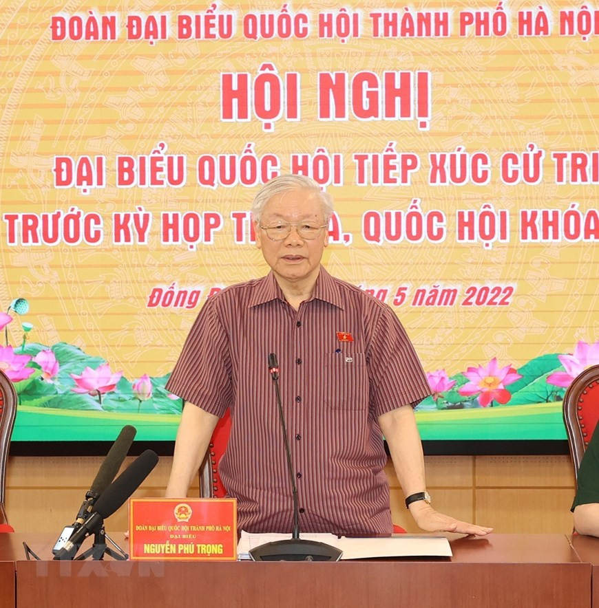 Sáng nay (12/5), Tổng Bí thư Nguyễn Phú Trọng có cuộc tiếp xúc cử tri 3 quận Ba Đình, Đống Đa, Hai Bà Trưng (Hà Nội) trước kỳ họp thứ 3, Quốc hội khóa XV.
