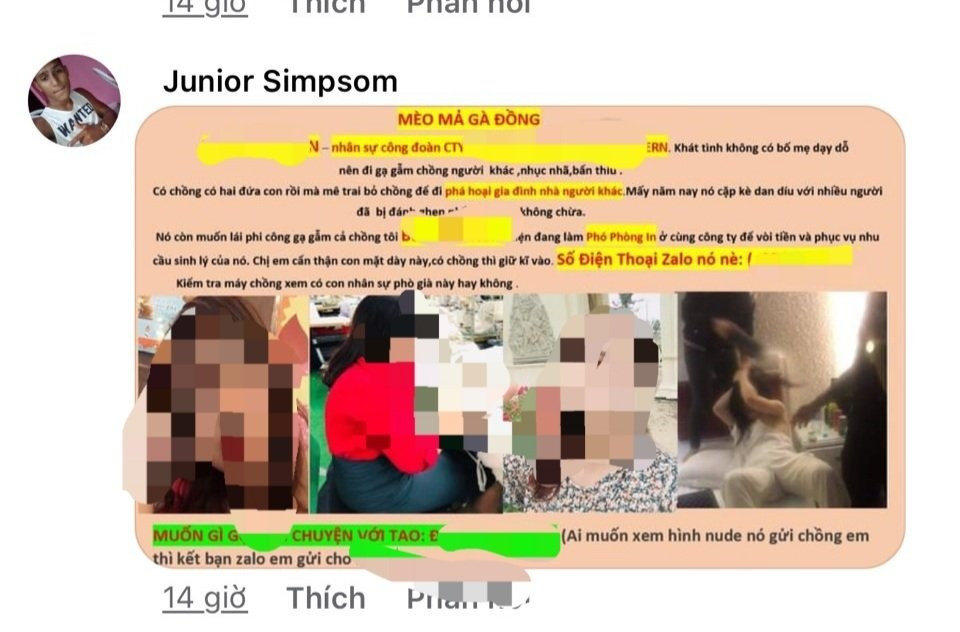 Tiếp đó, chị T thấy hình ảnh của mình bị cắt ghép với hình ảnh của công nhân vay tiền đăng lên mạng xã hội, dựng chuyện chị T gạ gẫm, cướp chồng người khác.