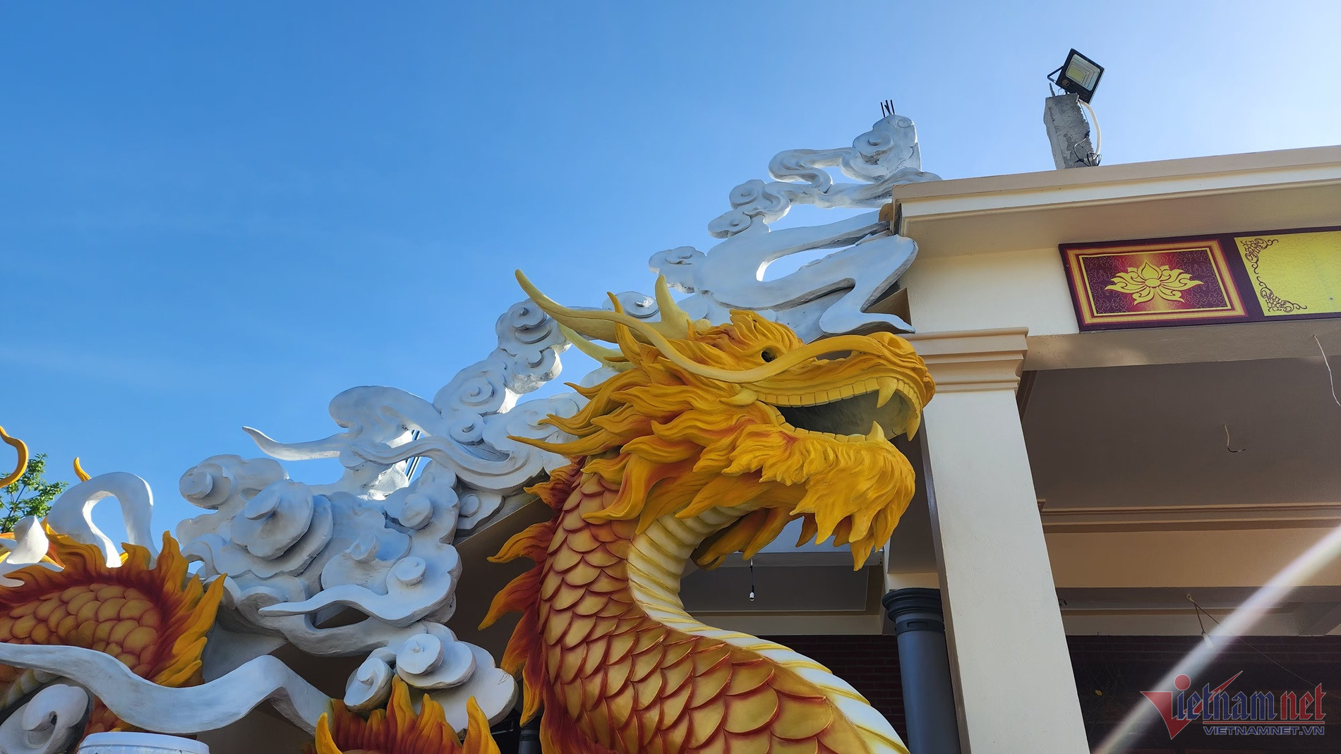 Anh Đinh Văn Tâm chia sẻ, 2 bức tượng linh vật rồng được đặt ở 2 bên, có thế đối xứng. Hai bức tượng có kích thước như nhau, đều làm bằng xi măng, bên trong là khung thép kiên cố.