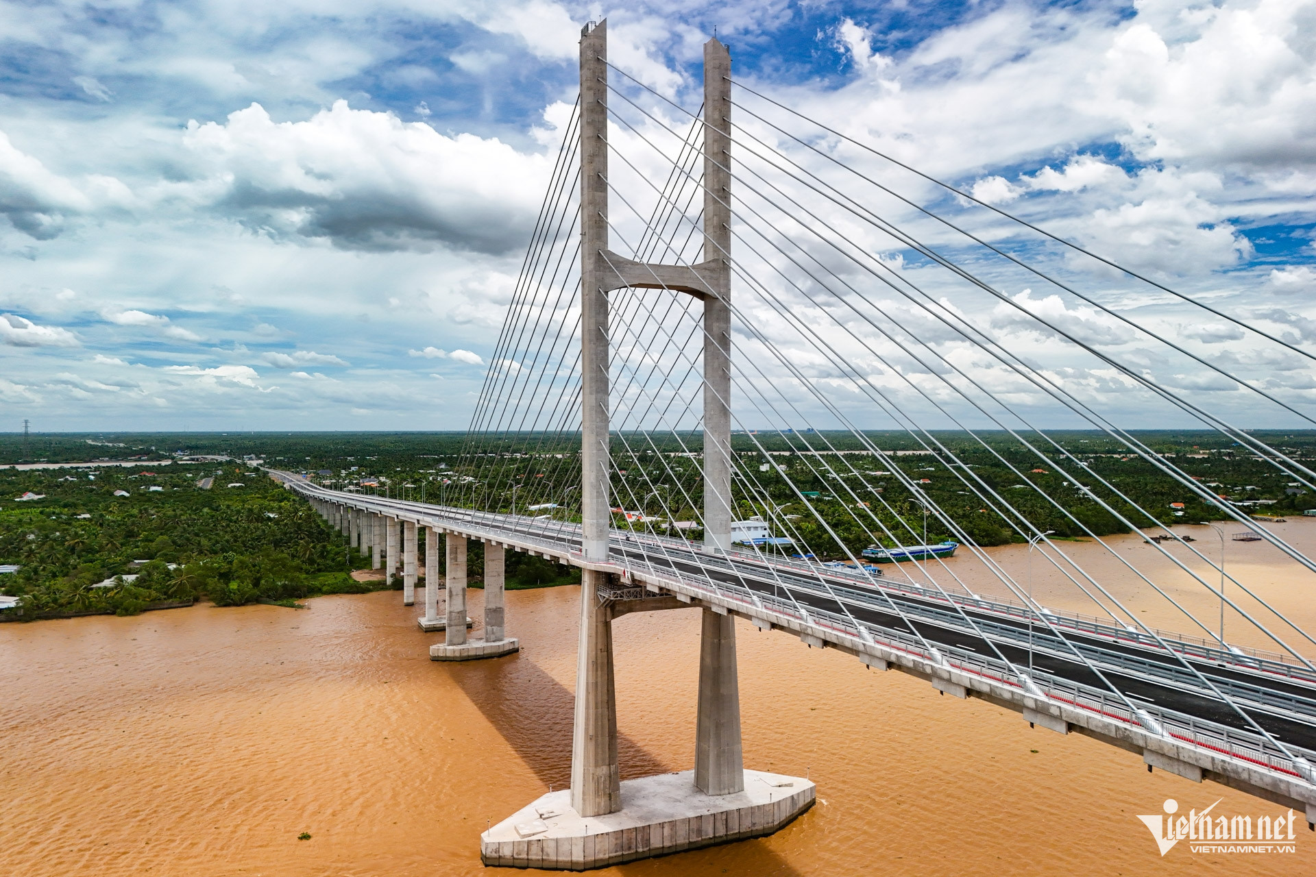 Sau hơn ba năm thi công, cầu Rạch Miễu 2 - cây cầu dây văng hiện đại bắc qua sông Tiền, kết nối Đồng Tháp và Vĩnh Long - sẽ chính thức thông xe vào ngày 19/8. Dự án có tổng mức đầu tư hơn 6.810 tỷ đồng, sử dụng vốn ngân sách nhà nước, trong đó giai đoạn 2021-2025 bố trí khoảng 5.592 tỷ đồng, phần còn lại dự kiến phân bổ cho giai đoạn 2026-2030.