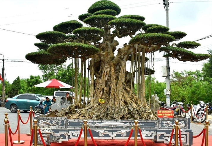 “Sau khi mua lại từ năm 2017, đến nay tôi chăm sóc, hoàn thiện để cây đẹp hơn. Nhìn qua mọi người dễ dàng hình dung cây nhìn như con khổng tước (chim công) đứng trên đỉnh núi. Đặc biệt cây mang vóc đầm lùn, tuổi cao trăm năm, dáng tự nhiên. Nhiều người định giá 3 triệu USD (khoảng 70 tỷ đồng) nhưng tôi không có nhu cầu bán”, anh Triệu Quang Đạt (Tân Triều, Hà Nội) chủ nhân tác phẩm sanh nghệ thuật chia sẻ.