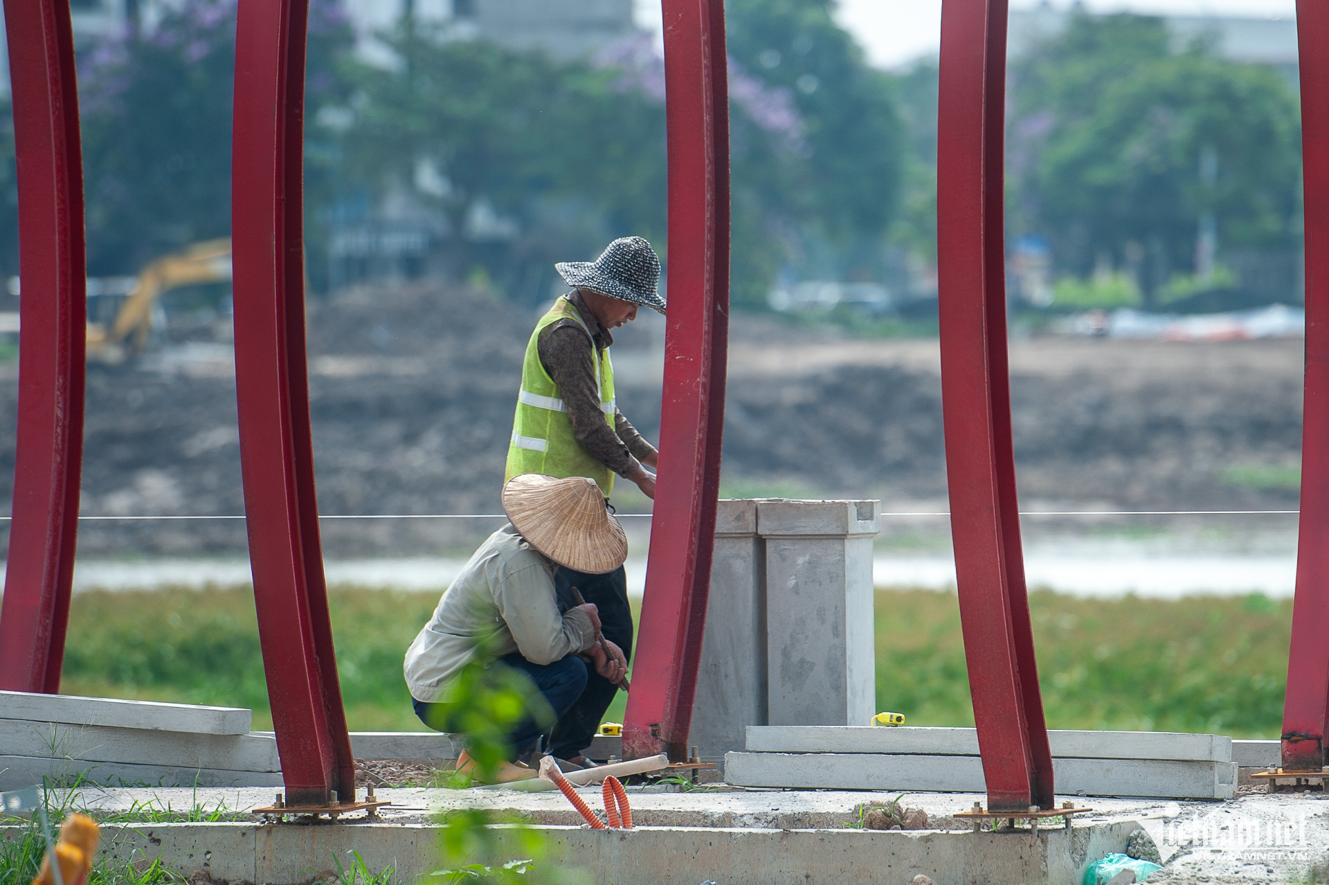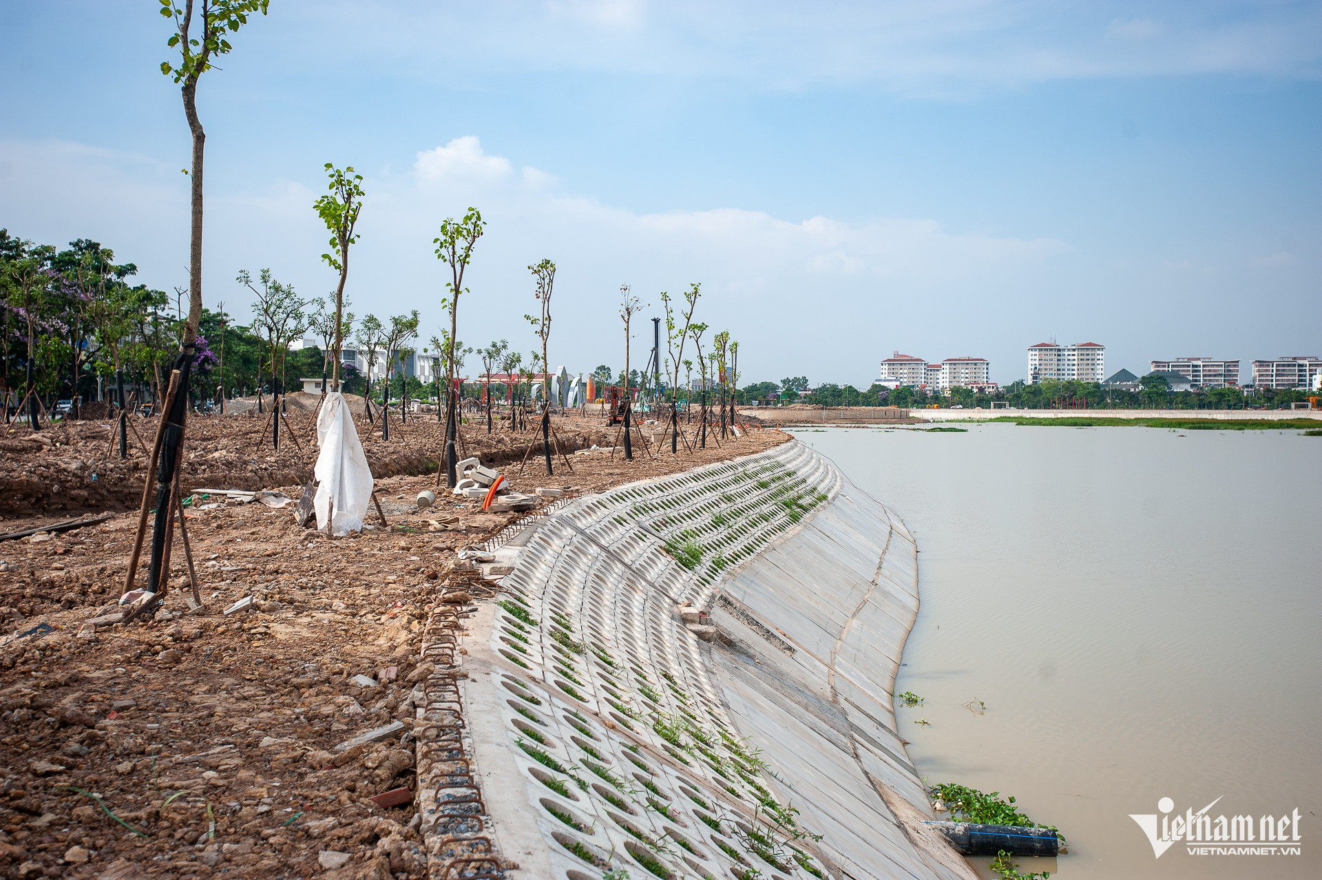 Công trình dự kiến hoàn thành cuối năm 2024 nhưng bị chậm tiến độ so với kế hoạch. Hiện máy móc, nhân lực đang được huy động liên tục để thi công kè hồ, lan can...