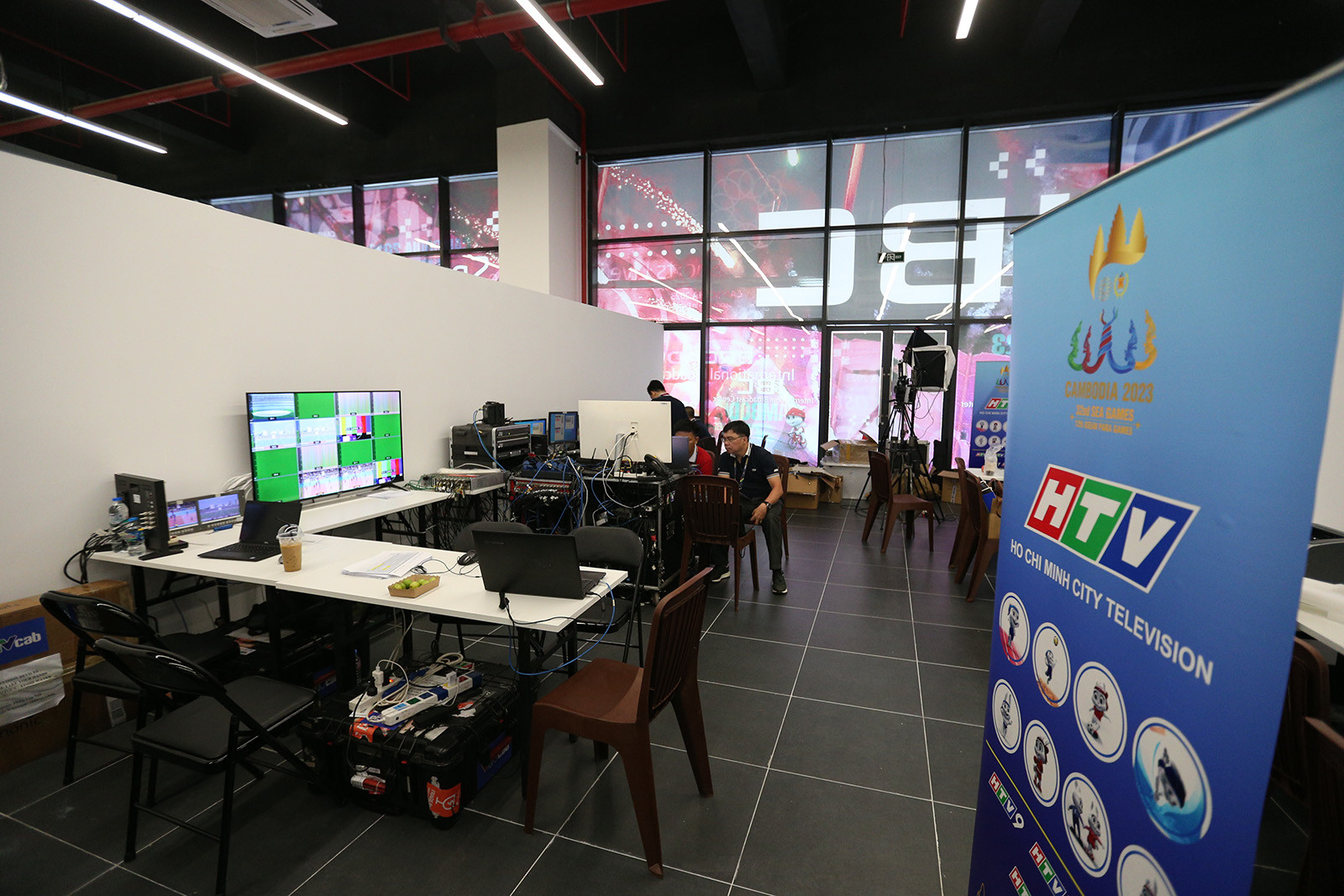 Trước ngày khai mạc SEA Games 32, Trung tâm Báo chí chính (MPC - Main Press Center) và Trung tâm Truyền hình Quốc tế (IBC - Internatiomal Broadcast Center) khai trương với sự góp mặt của đông đảo giới truyền thông trong khu vực. Bộ trưởng Bộ Thông tin Truyền thông Campuchia tới dự lễ khai mạc Trung tâm Báo chí chính và Trung tâm Truyền hình Quốc tế của SEA Games 32.Cả MPC và IBC phục vụ SEA Games 32 đều nằm trong khuôn viên tổ hợp Morodok hiện đại của chủ nhà Campuchia.Sơ đồ các phòng chức năng của MPC và IBC.MPC SEA Games 32 được thiết kế hiện đại, có sức chứa 500 chỗ ngồi với các phòng làm việc, họp báo được trang bị hệ thống máy vi tính, mạng Internet hữu tuyến, wifi, màn hình LED...Trung tâm Truyền hình Quốc tế là nơi cung cấp tín hiệu truyền dẫn phát sóng của các đài truyền hình phục vụ SEA Games 32.Ngoài Trung tâm Báo chí vừa đưa vào vận hành, nước chủ nhà Campuchia còn thiết lập một Trung tâm Báo chí khác tại Trung tâm Hội chợ Triển lãm Chroy Changvar - địa điểm thi đấu của một số môn.Khu vực máy chủ luôn có chuyên gia trực nhằm xử lý nhanh nhất các sự cố có thể xảy ra.Hệ thống quay chậm ở tất cả các môn thi đấu.Có gần 10 đài truyền hình quốc tế được Ủy ban Olympic quốc gia (NOC) các nước cấp phép thuê gian hàng để tổ chức phát sóng từ IBC, trong đó có RTM (Malaysia), T SPORT 7 (Thái Lan), VTV và HTV (Việt Nam), Media Corp (Singapore), MNC TV (Indonesia) và Cignal TV (Philippines)...Khu vực bình luận của Đài truyền hình Việt Nam tại IBC.Các phóng viên của HTV làm việc hăng say, sẵn sàng cho một kỳ SEA Games bùng nổ các chương trình hấp dẫn.Khi SEA Games 32 chính thức khai mạc, MPC và IBC sẽ có hàng trăm phóng viên tác nghiệp cùng lúc.Cả MPC và IBC đều phục bụ bữa ăn nhẹ cho các phóng viên. Các món ăn được thay đổi theo từng khung giờ.Từ ngày 3-8/5, Bộ Thông tin Vương quốc Campuchia tổ chức chương trình khảo sát SEA Games 32 dành cho các nhà báo ASEAN. Thông qua dự án này, chủ nhà Campuchia muốn được giới thiệu nhiều hơn nữa về công tác tổ chức Đại hội thể thao Đông Nam Á. Trong chiều 4/5, đoàn phóng viên ASEAN, trong đó có 2 nhà báo đến từ Bộ Thông tin và Truyền thông Việt Nam, được trực tiếp tác nghiệp, trải nghiệm tại "đại bản doanh" của báo chí tại SEA Games 32.