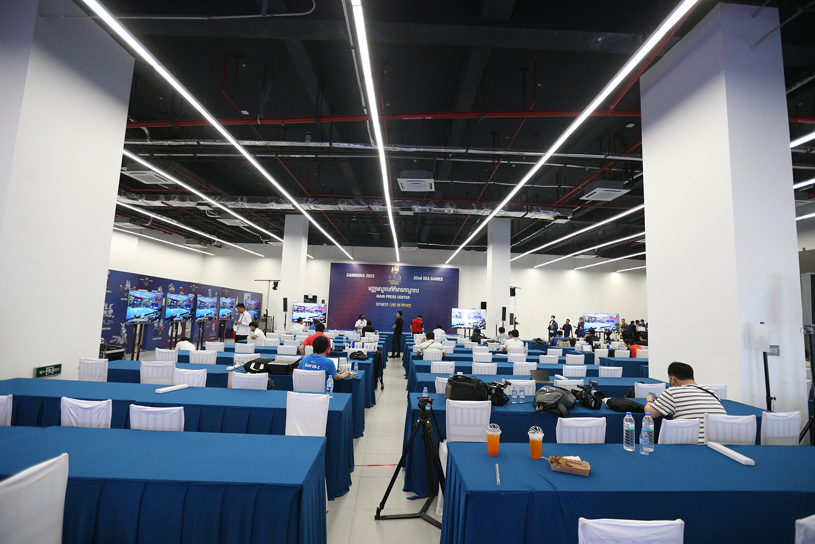 Trung tâm báo chí của SEA Games 32 được đặt tại tổ hợp SVĐ Morodok Techo, có sức chứa lên tới hàng trăm người.