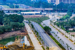 Hiện khu vực này gần như đã hoàn tất, chỉ còn công tác lắp đặt kết cấu bảo vệ cây xanh mới trồng.