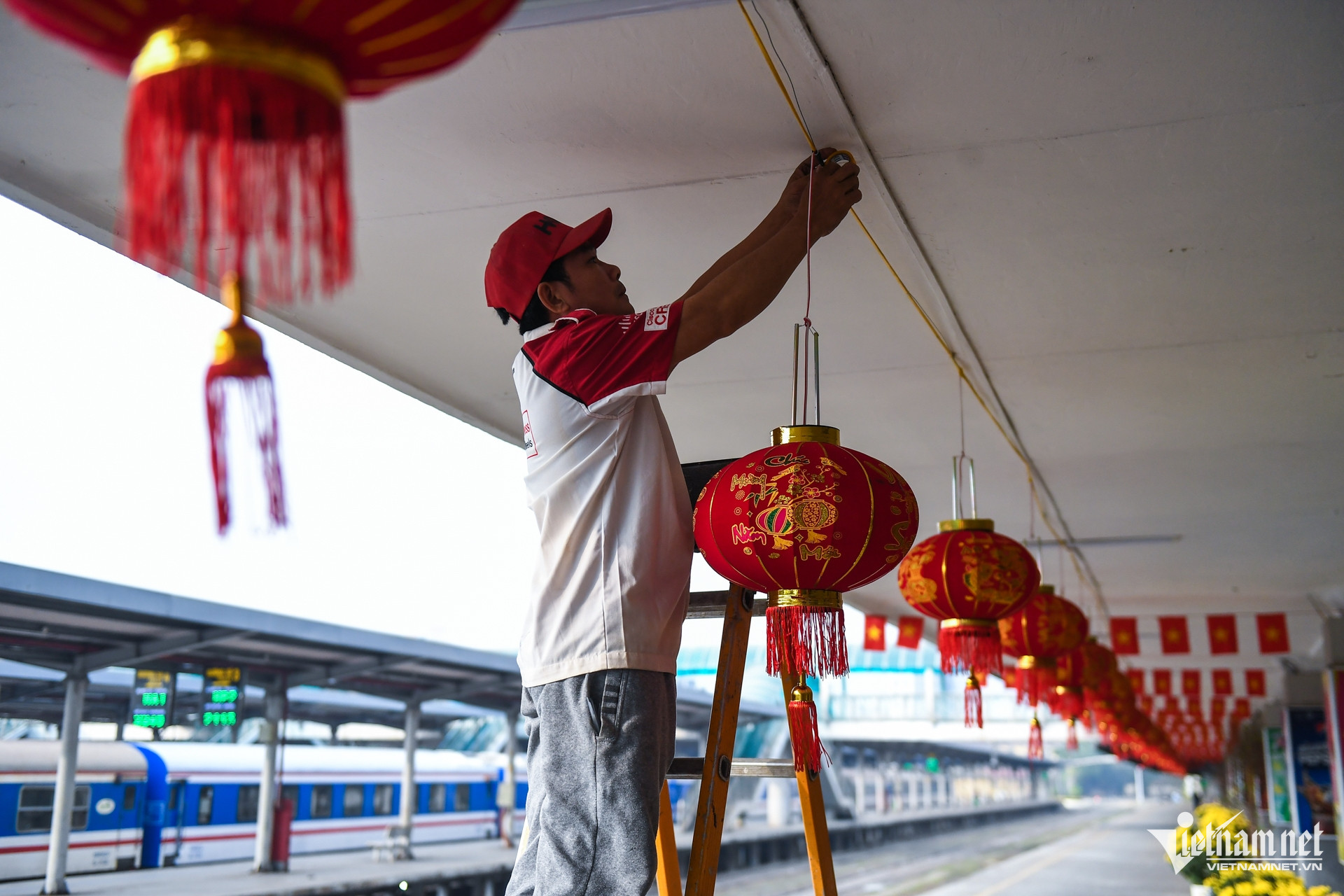 Tại ga Hà Nội những ngày này không khí Tết cũng ngập tràn khi sân ga được tô điểm thêm những màu sắc rực rỡ.