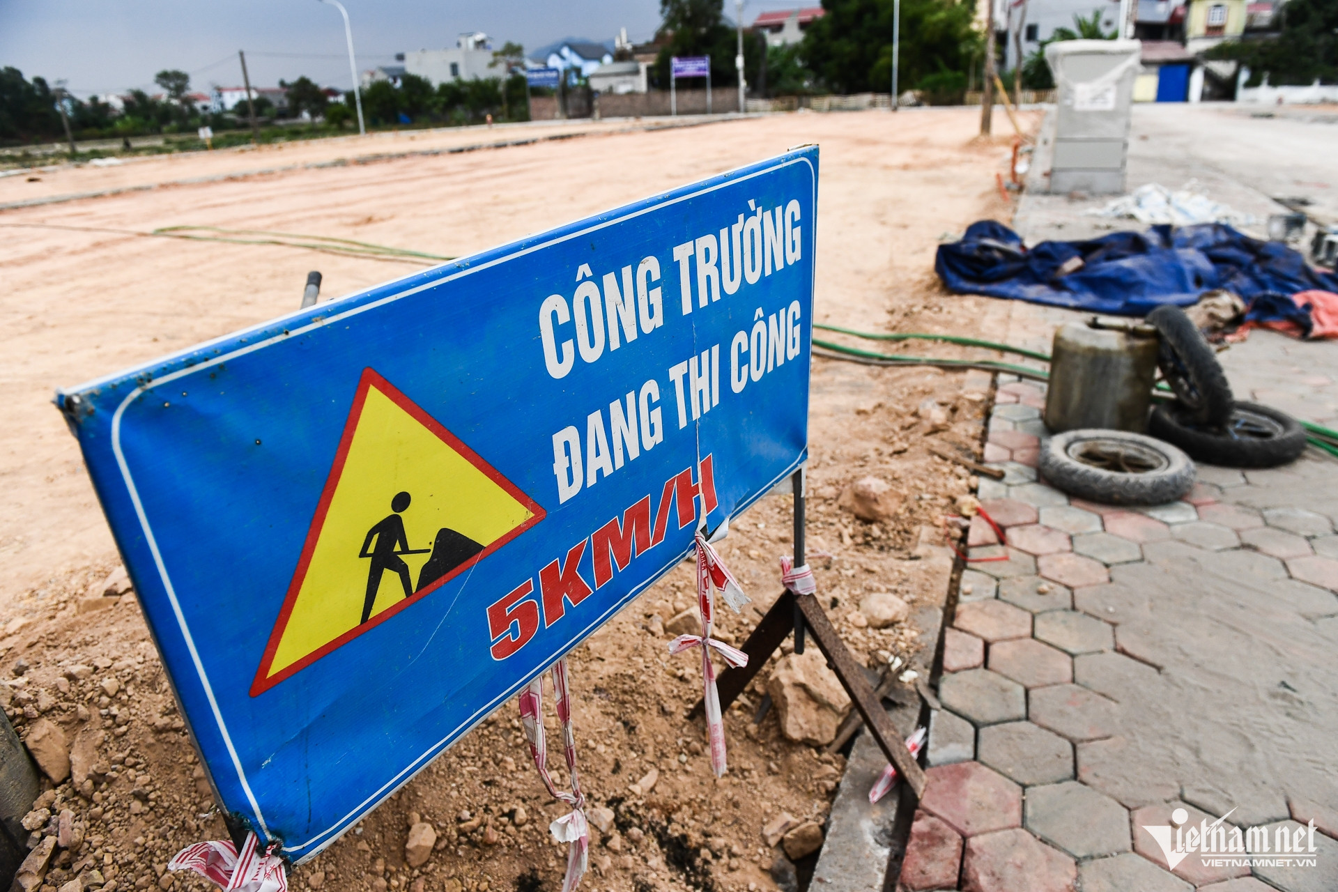 Khu đấu giá 58 thửa đất ở thôn Đông Lai, xã Quang Tiến đang trong quá trình xây dựng, hoàn thiện hệ thống hạ tầng kỹ thuật, nhiều hạng mục vẫn còn ngổn ngang.