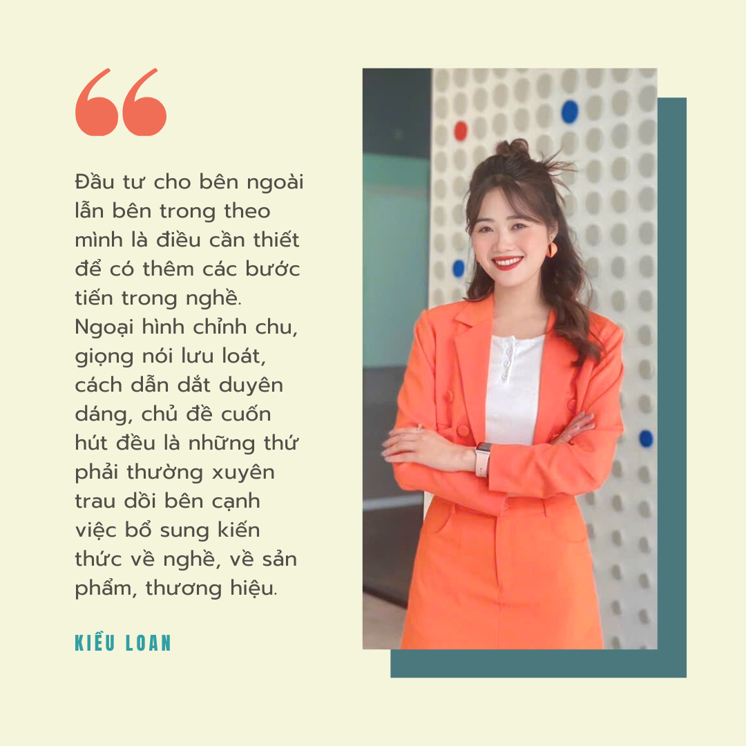 Xinh xắn và ngập tràn năng lượng là những ấn tượng đầu tiên khi gặp gỡ Kiều Loan. Chia sẻ về công việc host livestream (người dẫn chương trình phát sóng trực tiếp), cô nàng đúc kết sau 3 năm gắn bó cùng Shopee Live: “Khả năng ăn nói, cách ứng biến tình huống và tinh thần học hỏi là những thứ cốt lõi để trụ lại ngành này”.