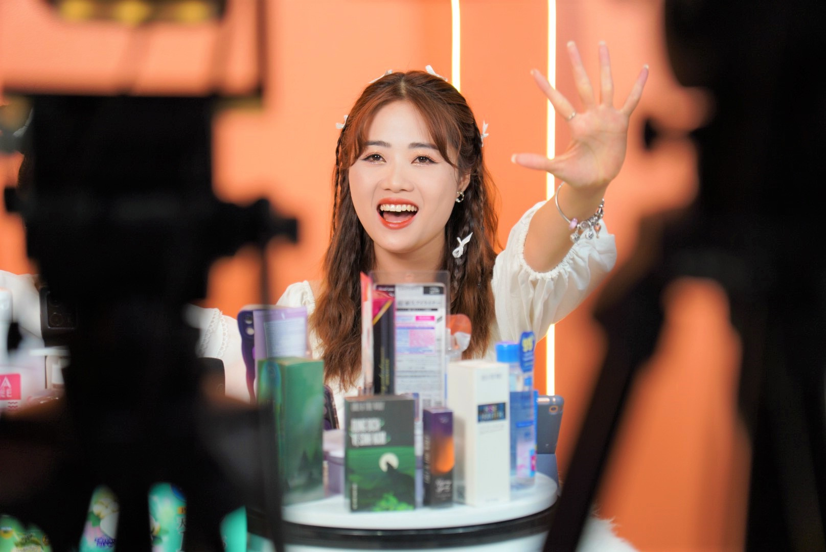 Choáng ngợp là cảm giác của Loan khi lần đầu tiên bước chân vào studio ghi hình của Shopee Live. “Tận mắt nhìn thấy quy trình chuẩn bị cho một buổi live và dàn ekip hùng hậu sau đó, mình vừa háo hức lại vừa run, cảm giác không khác gì tờ giấy trắng vì có quá nhiều điều mới lạ mà trước đây chưa từng thấy qua”, Kiều Loan bộc bạch.