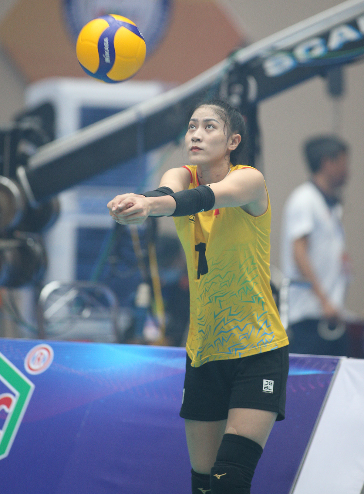 Tay đập mới nổi của bóng chuyền nữ Việt Nam Hoàng Thị Kiều Trinh nhận danh hiệu Hoa khôi giải bóng chuyền nữ quốc tế VTV Cup 2023.