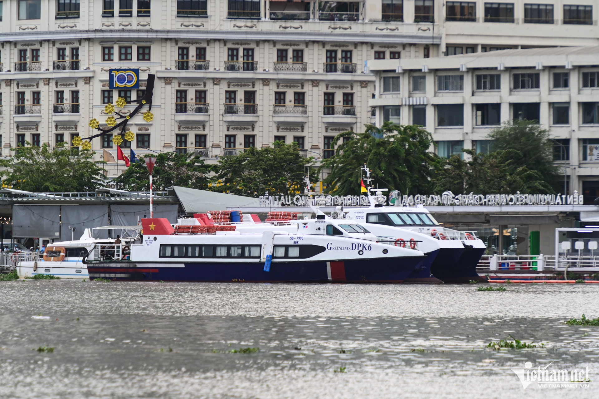 Đầu cầu ở phía quận 1 nằm trên công viên bến Bạch Đằng, cách công trường Mê Linh hơn 100m.