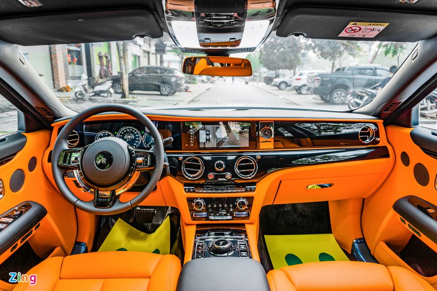 Điểm đặc biệt trên chiếc sedan Anh quốc nằm ở việc nội thất được bọc da màu cam khá bắt mắt, lấy cảm hứng từ thương hiệu thời trang Hermès. Mặc dù mang lại sự độc đáo, chủ nhân cần phải giữ gìn kĩ càng hơn nếu muốn nội thất luôn đẹp. |