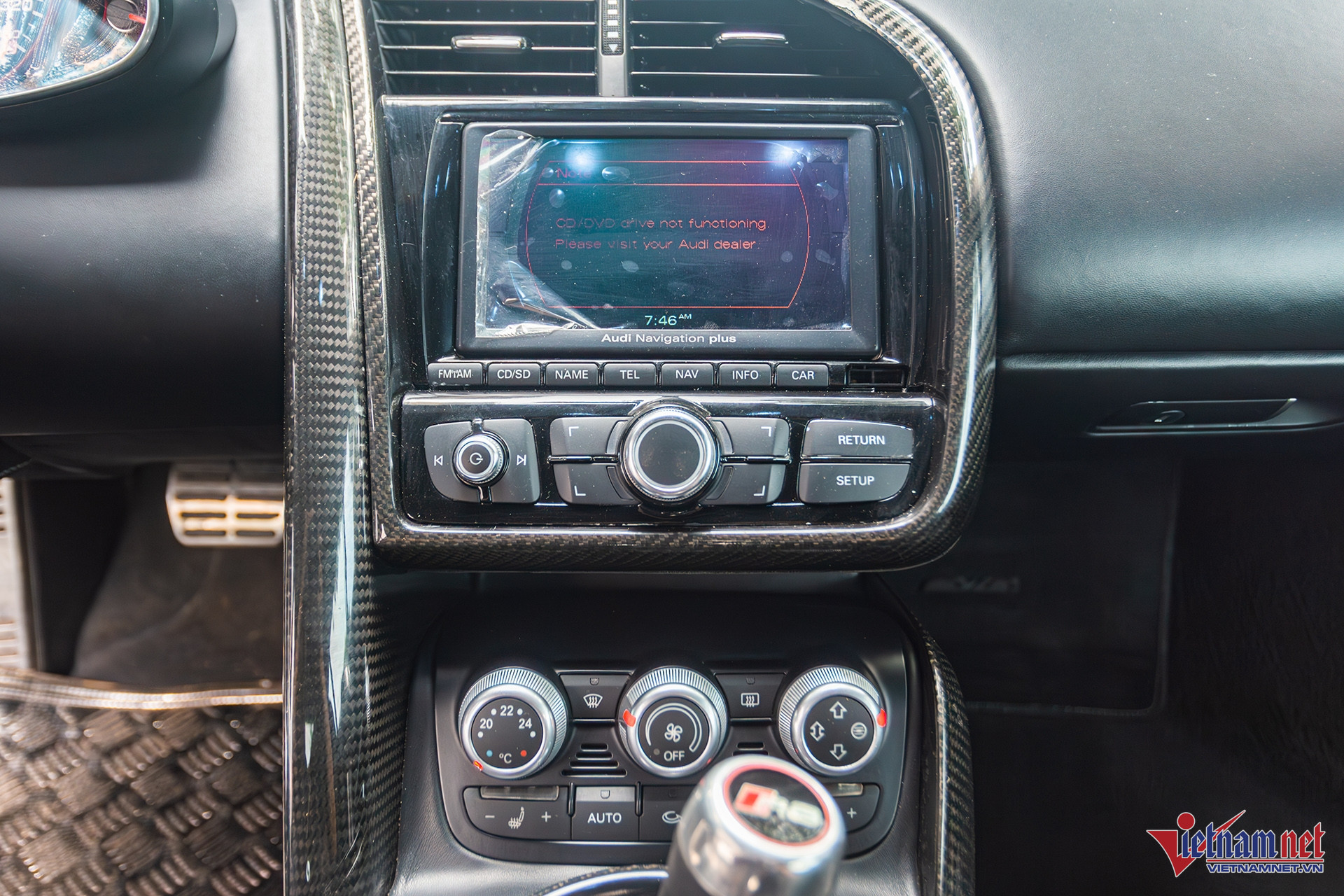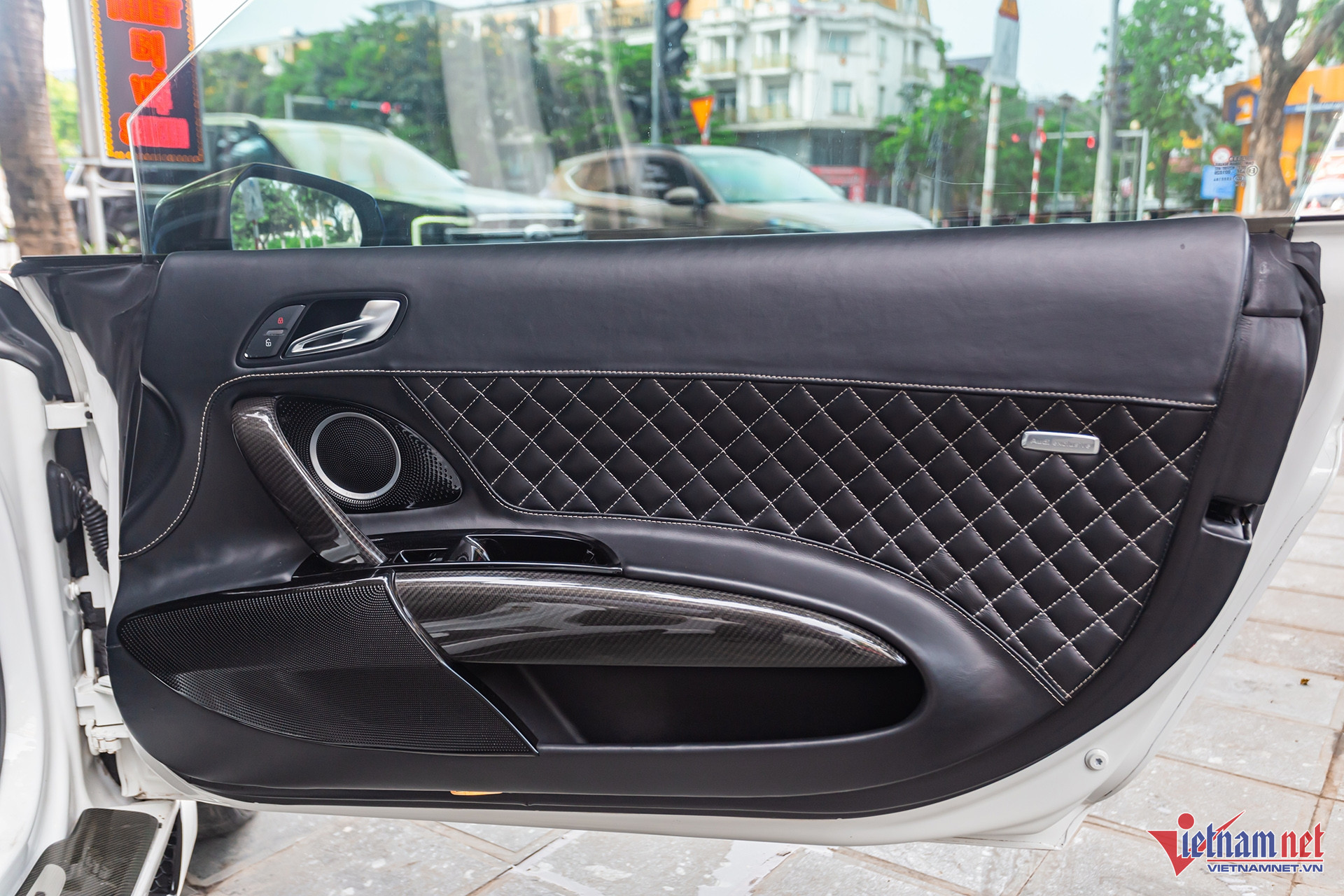 Nhiều chi tiết ốp sợi carbon trang trí như táp-pi cửa, tay nắm cửa, táp-lô, bảng điều khiển trung tâm, viền xung quanh khu vực cần số và phanh tay.