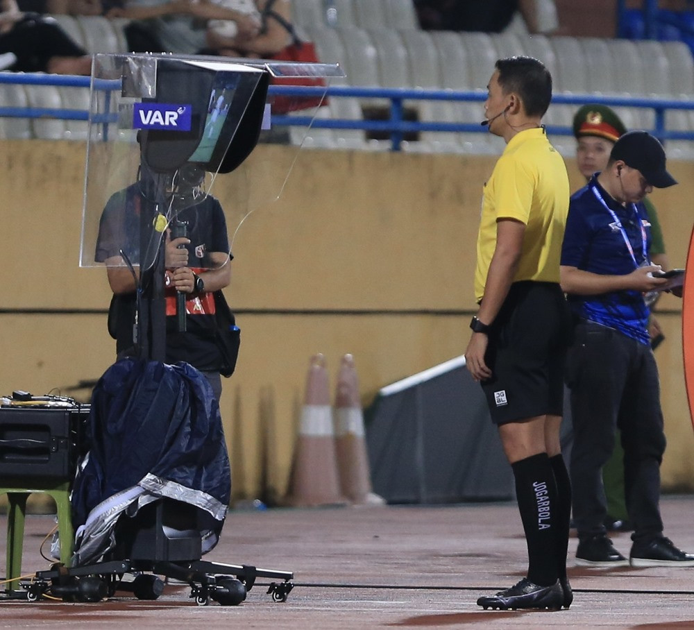 Trọng tài VAR là ông Mai Xuân Hùng, AVAR Dương Hữu Phúc. Tất cả 6 Trọng tài này đều đã tham dự lớp đào tạo trọng tài VAR và vượt qua các bài kiểm tra đánh giá của FIFA. Giám sát Trọng tài Võ Minh Trí cũng là giảng viên của lớp trọng tài VAR này.Trước đó, để chuẩn bị cho việc áp dụng công nghệ VAR tại V-League 2023, VPF, BTC giải, Ban trọng tài VFF đã có những buổi làm việc, phổ biến các nội dung liên quan đến cầu thủ và BHL của CLB Viettel và Hà Tĩnh. Ngoài ra, sân Hàng Đẫy – địa điểm tổ chức trận đấu cũng hoàn thành các bước kiểm tra theo quy định của FIFA, các công việc liên quan đo trắc địa sân, tích hợp các dữ liệu về sân Hàng Đẫy vào hệ thống đường kẻ xác định việt vị ảo có dùng trí tuệ nhân tạo cũng đã được thực hiện xong.Ngay đầu trận đấu Viettel vs Hà Tĩnh, trọng tài Ngô Duy Lân đã nhờ tới sự hỗ trợ của VAR để xác định xem ngoại binh Ze Paullo có phải nhận thẻ đỏ hay không. Đó là tình huống diễn ra ở phút thứ 10. Ze Paullo có pha tranh chấp quyết liệt ở giữa sân. Số 88 bên phía Hà Tĩnh vào bóng thẳng bằng gầm giày về phía đối thủ. Ban đầu, trọng tài Ngô Duy Lân rút thẻ vàng cảnh cáo ngoại binh của Hà Tĩnh. Tuy nhiên, các cầu thủ Viettel cho rằng Ze Paullo cần phải nhận án phạt nặng hơn. Sau đó, trọng tài Ngô Duy Lân nhận được tín hiệu của tổ VAR và cho tạm dừng trận đấu ít phút. Sau khi trao đổi với tổ VAR, trọng tài FIFA Elite quyết định không truất quyền thi đấu của Ze Paullo và cho trận đấu tiếp tục. Không có thẻ đỏ dành cho ngoại binh của Hà Tĩnh.VAR (viết tắt của Video Assistant Referee) là một dạng áp dụng công nghệ tiên tiến vào việc hỗ trợ cho các trọng tài thông qua video. Công nghệ VAR được đưa vào sử dụng trong bóng đá nhằm giúp cho trọng tài có thể đưa ra các quyết định chính xác nhất thông qua các băng hình được ghi lại. Trước mắt, VAR sẽ được áp dụng ở một số trận của giai đoạn 2 V-League 2023 trước khi áp dụng nhiều hơn ở mùa giải tới.Ông Ngô Duy Lân trực tiếp xem màn hình VAR để xác định lỗi của hậu vệ Hà Tĩnh ở những phút bù giờQuả phạt đền từ VAR, Đức Chiến không bỏ lỡ cơ hội ấn định chiến thắng 4-0 cho Viettel