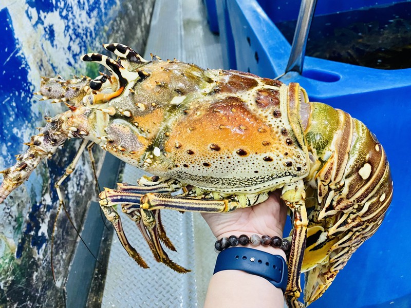 Mỗi con tôm hùm Caribe có chiều dài 40 cm và chiều ngang 15 cm, không tính phần chân và râu. Ảnh: Thu Hà |