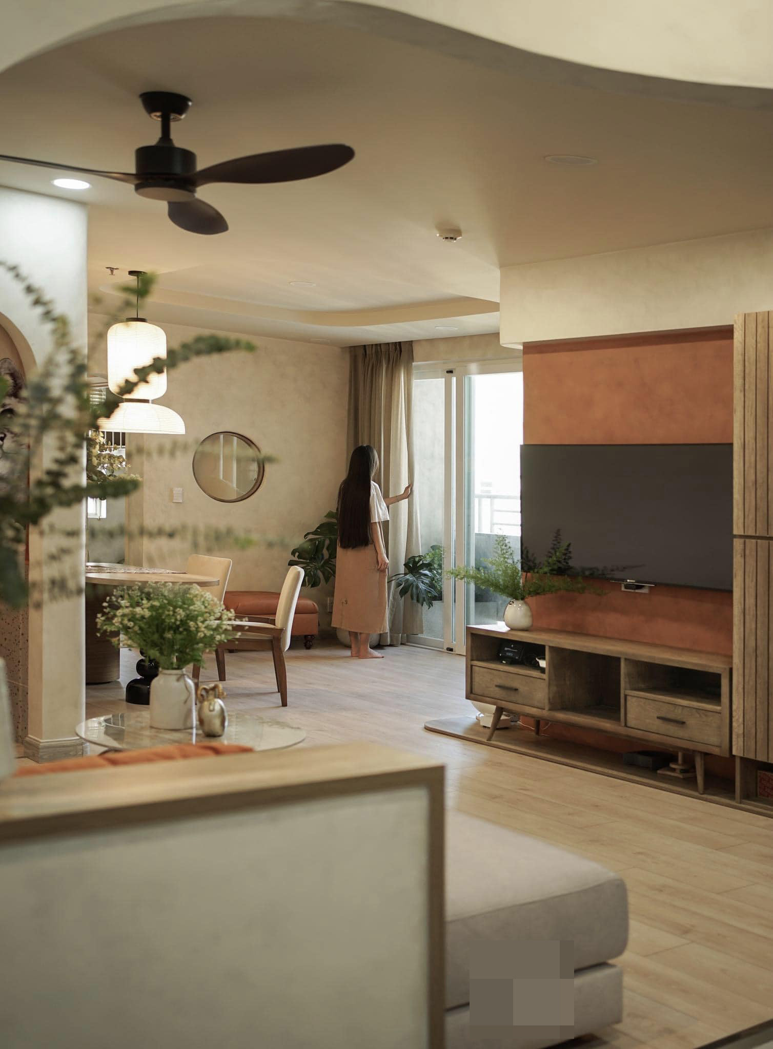 Gia chủ sống trong căn hộ mang phong cách nội thất Wabi-sabi sẽ tìm lại được cho bản thân sự bình yên, tĩnh lặng.
