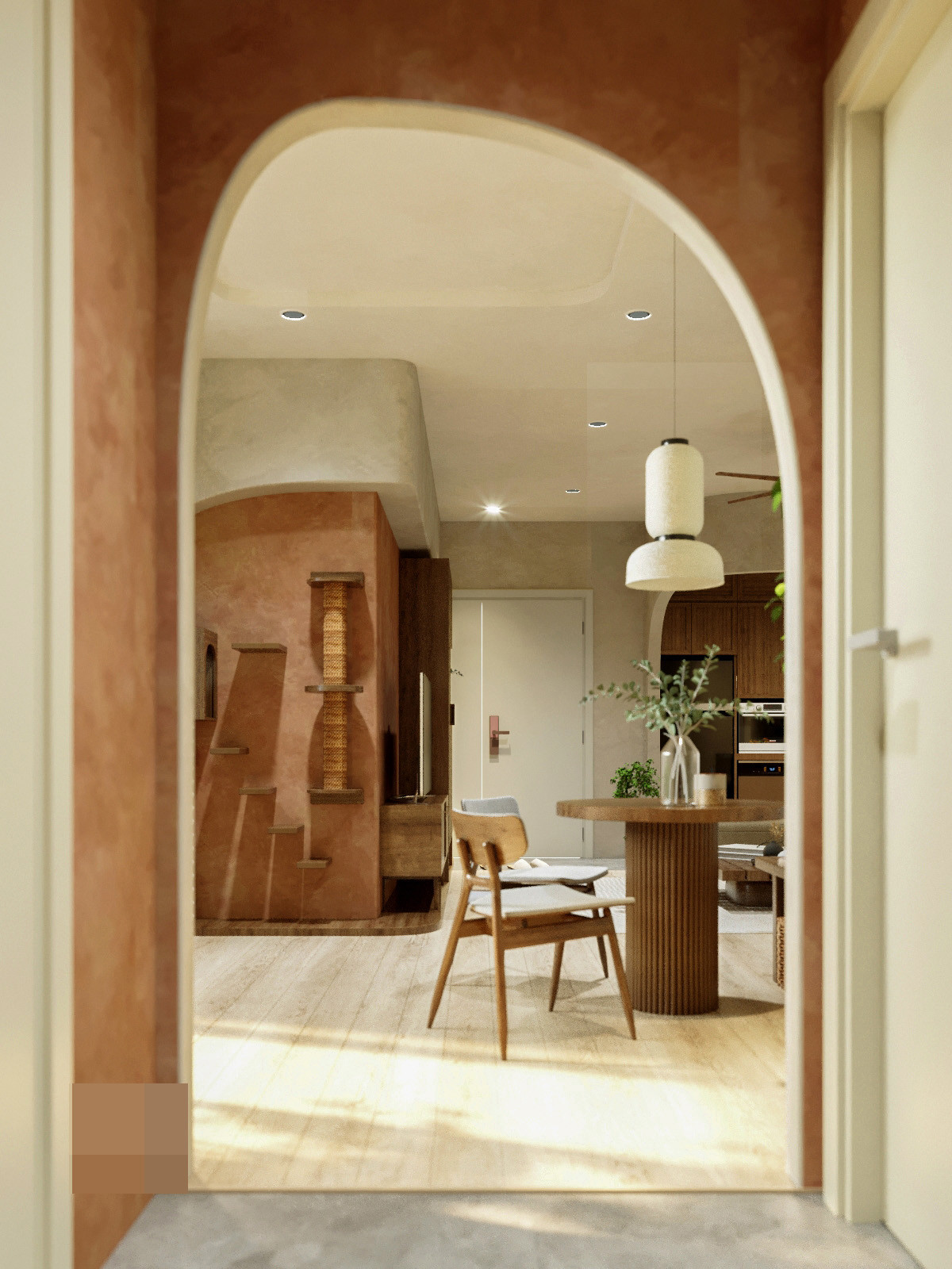 Công trình căn hộ ở Quận 6 (TP.HCM) là sản phẩm chị mới thực hiện năm 2022. Gia chủ là người yêu động vật, đang nuôi một chú mèo dễ thương nên đã đặt tên căn hộ là “Chum house”.