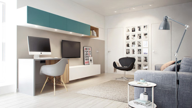 Mặc dù chỉ có 64 mét vuông, nhưng đồ nội thất và đồ gia dụng được thiết kế thông minh cho phép khách tích hợp mọi chức năng trong căn hộ nhỏ.