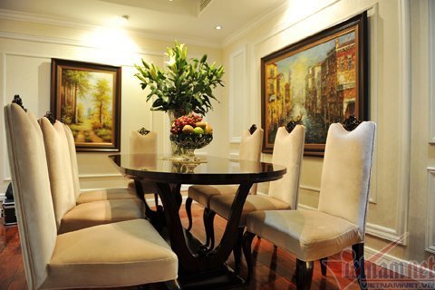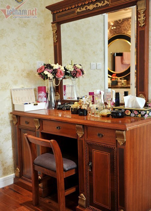 Phòng làm việc của Helene Hoài với bàn ghế, kệ tủ đều được thiết kế với gam màu trầm tạo cảm giác dễ chịu, tĩnh mịch. Căn bếp được bài trí gọn gàng, màu chủ đạo vẫn là màu trắng. Đây là nơi Helene Hoài nấu các món ăn ưa thích cho ông xã.