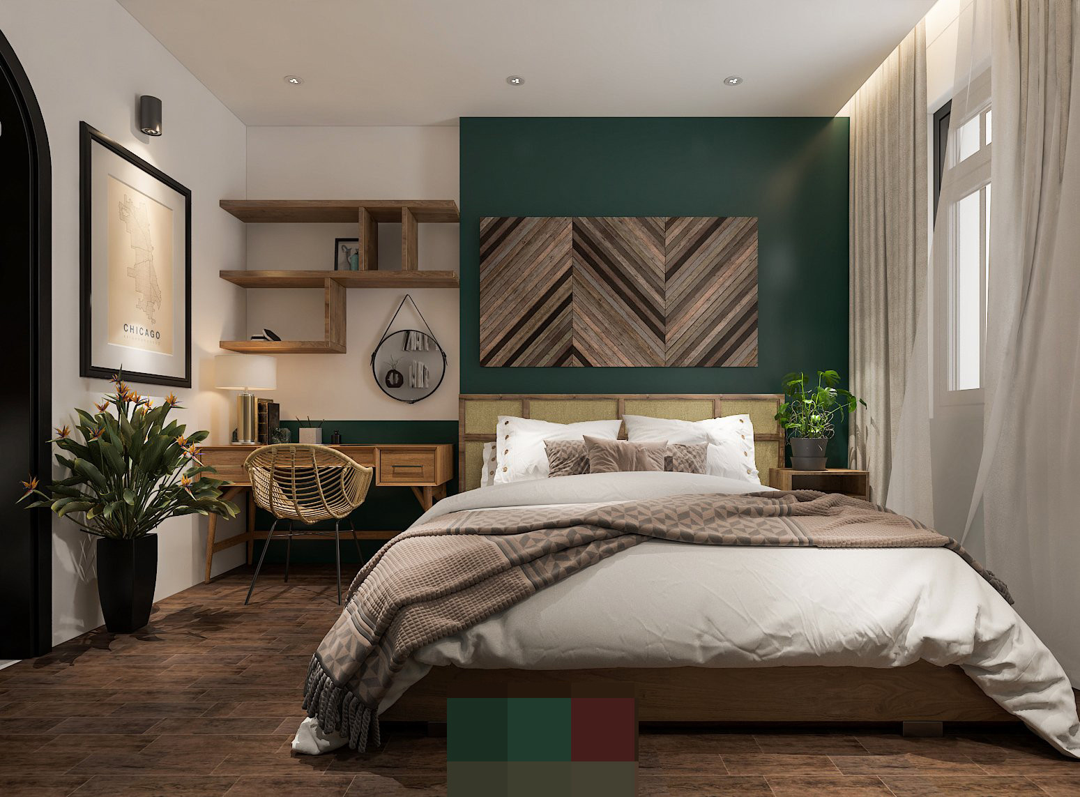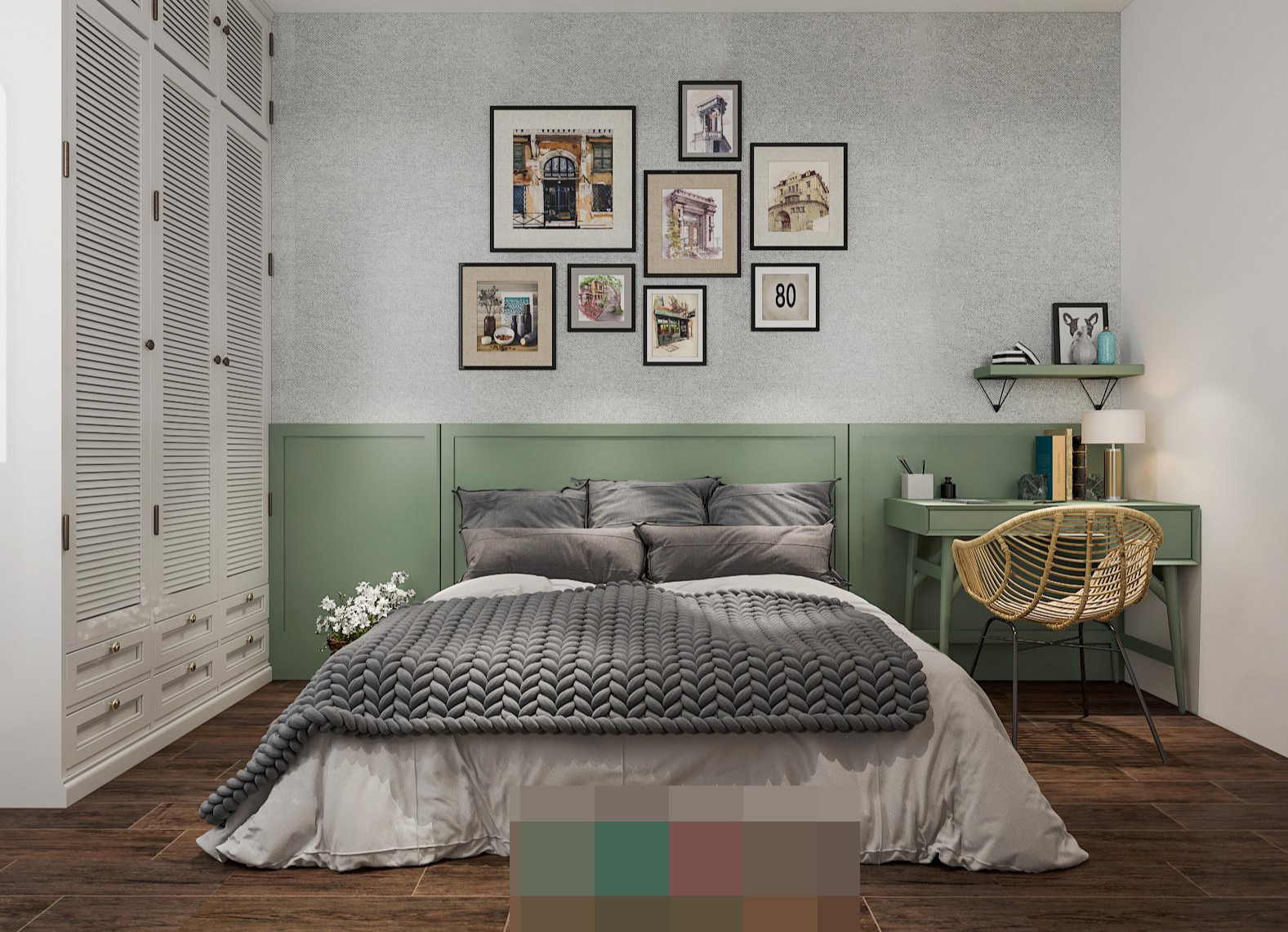 Màu xanh với các sắc độ khác nhau giúp tổng thể hài hòa, mát mắt và dễ chịu hơn.
